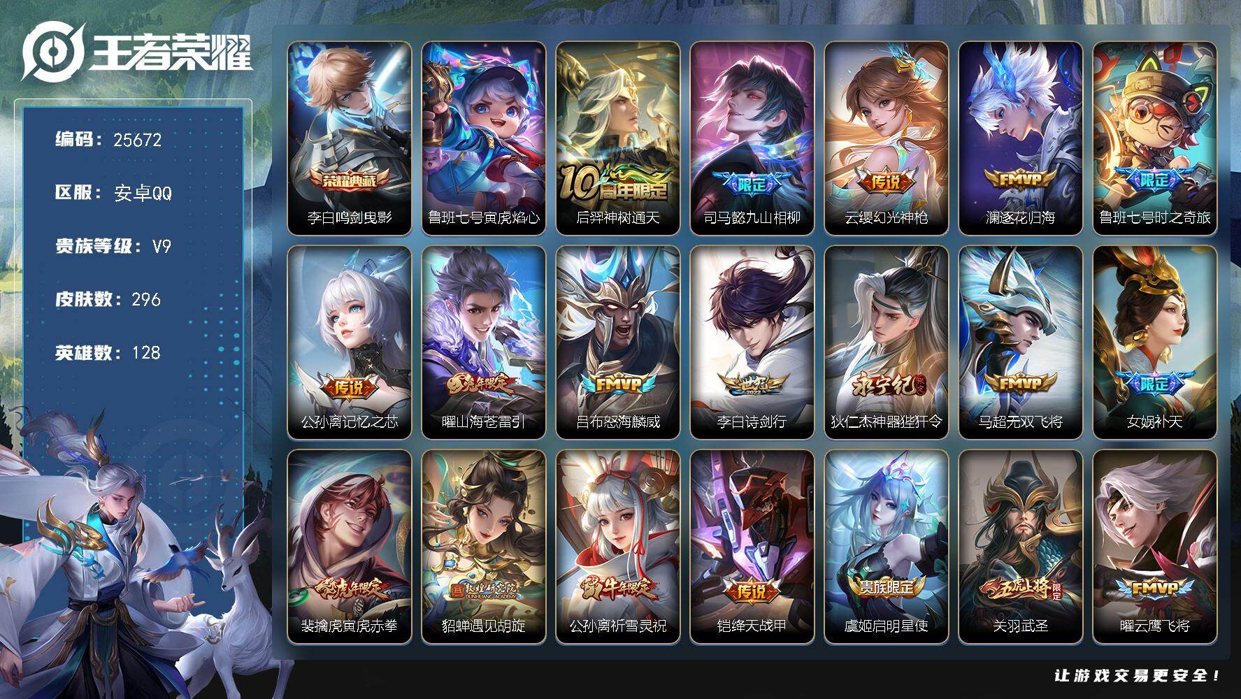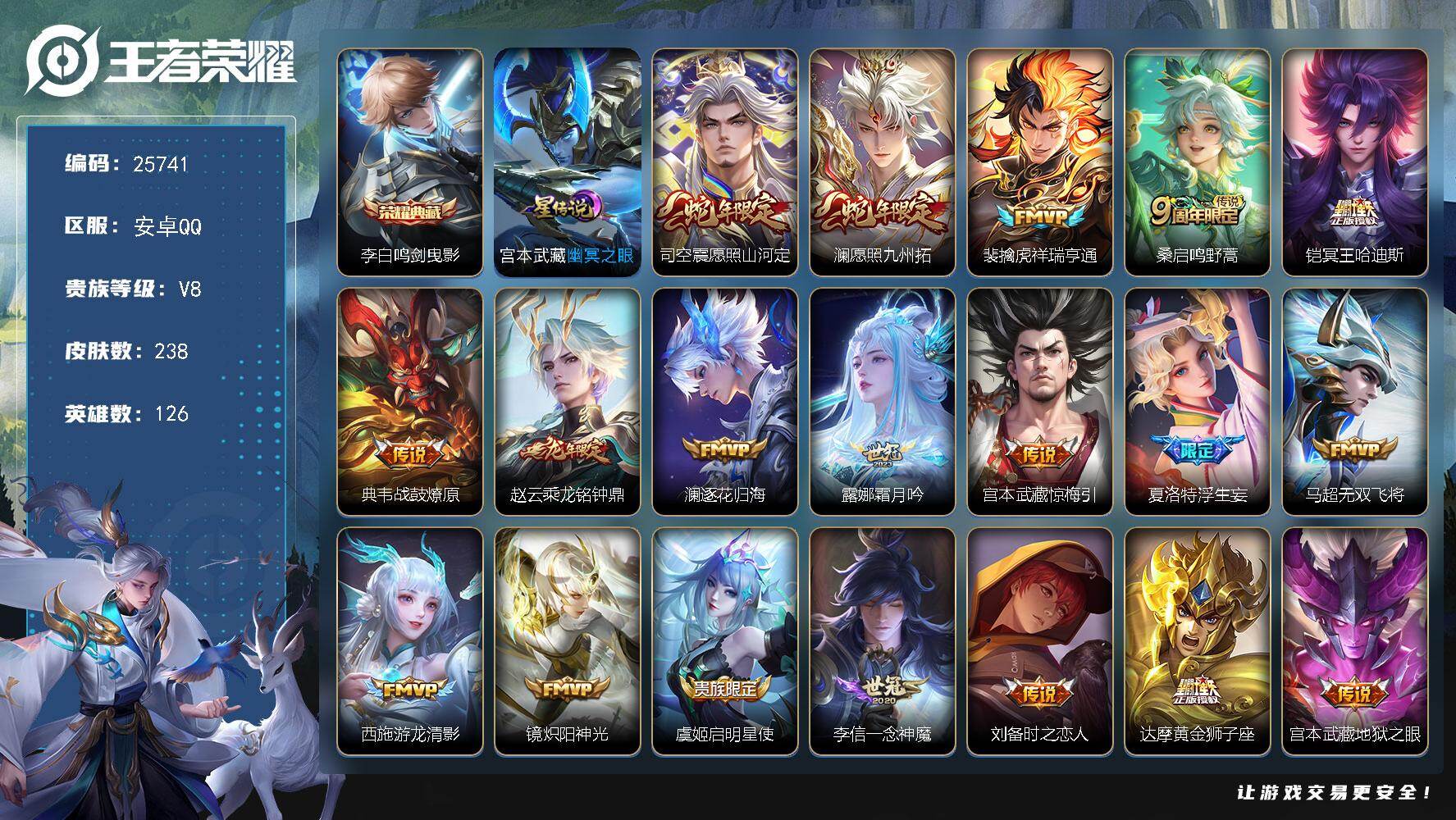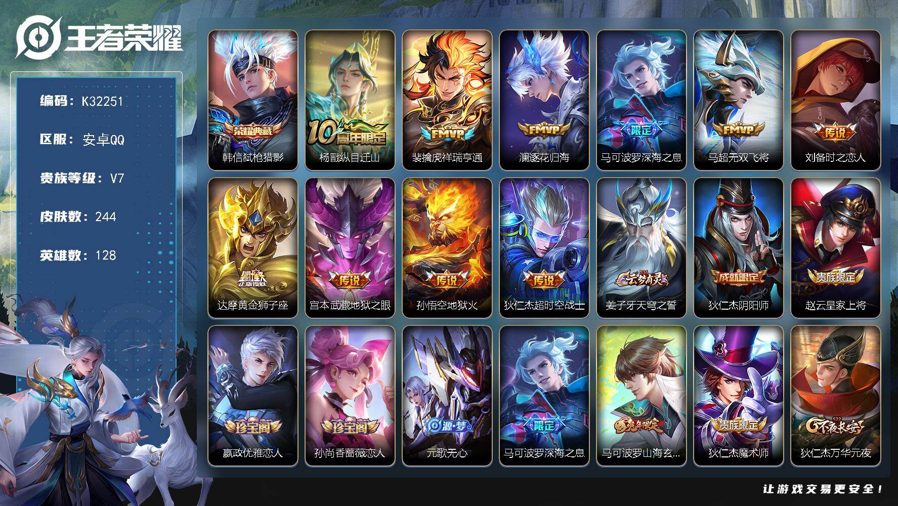 安卓Q-V7-最强王者段位-128英雄-244皮肤-1典藏皮肤-10传说-70史