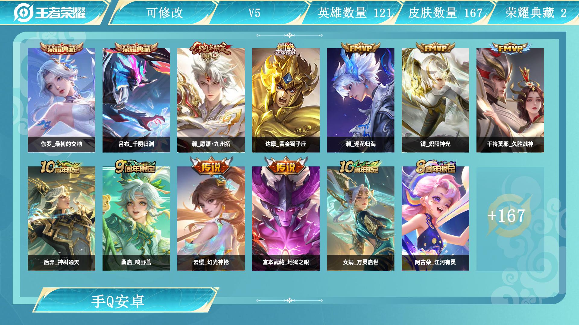 皮肤数量167印记总数7V5非凡王者可修改账号类型2荣耀典藏