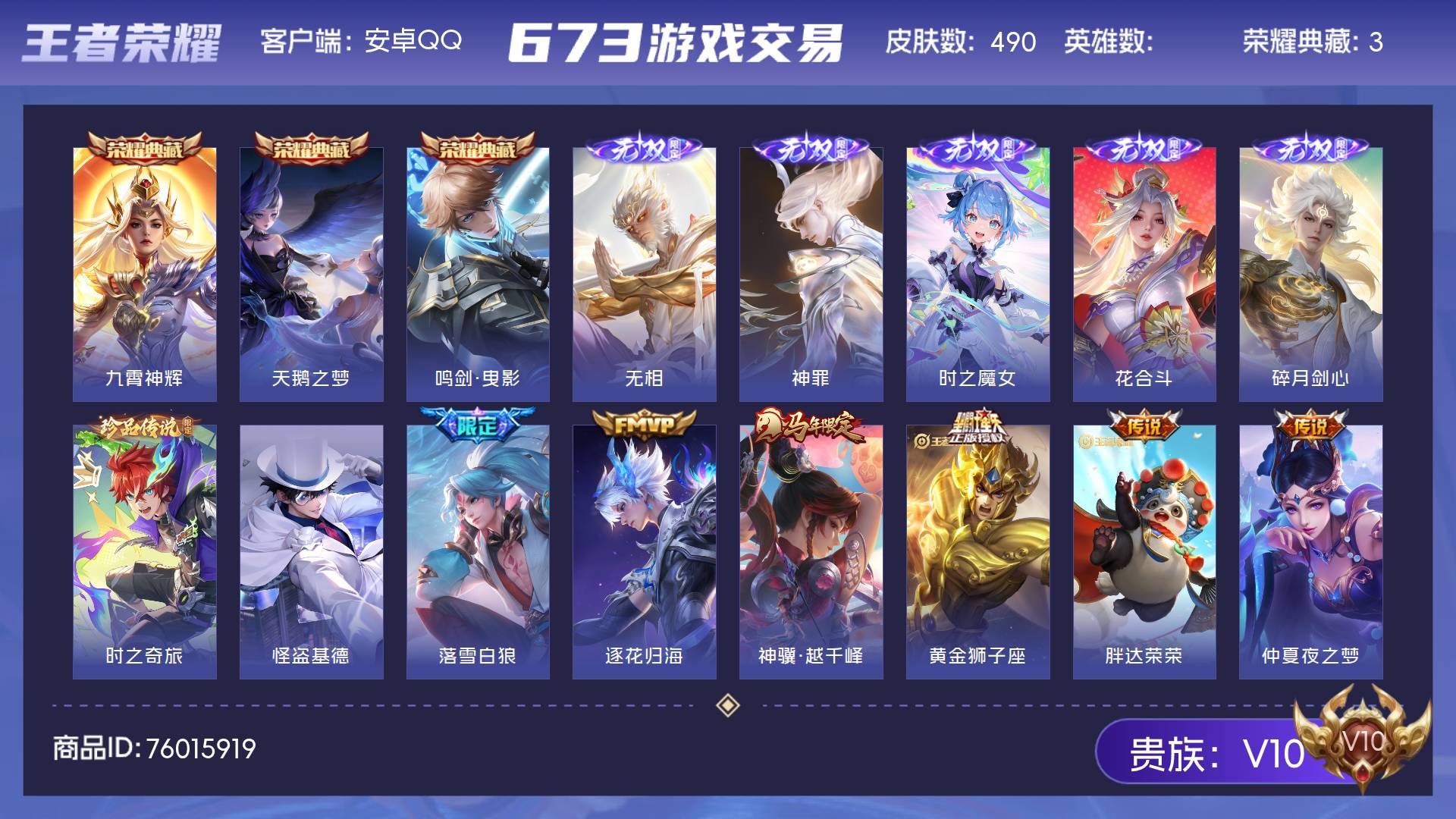V10 5典藏 1无双 34传说 127英雄 414皮肤 可