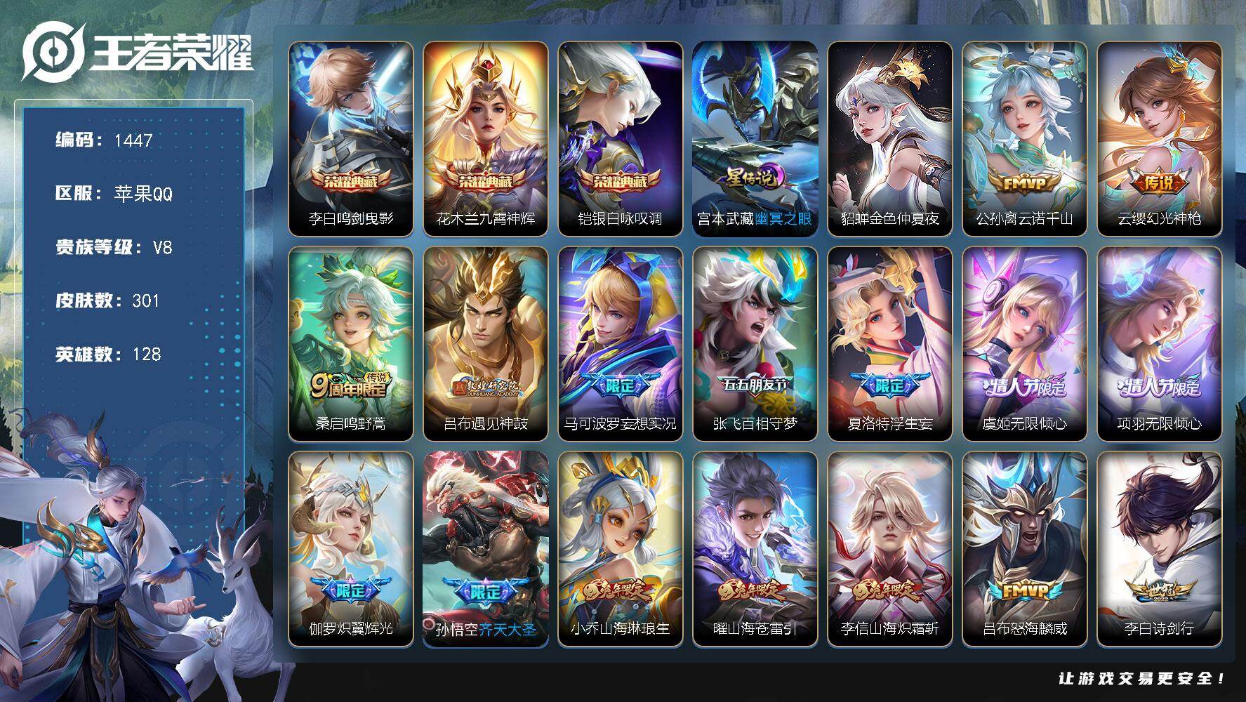 V6 1典藏 6传说 127英雄 147皮肤 可修改实名 男