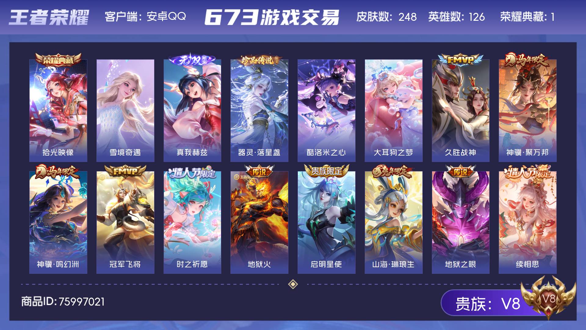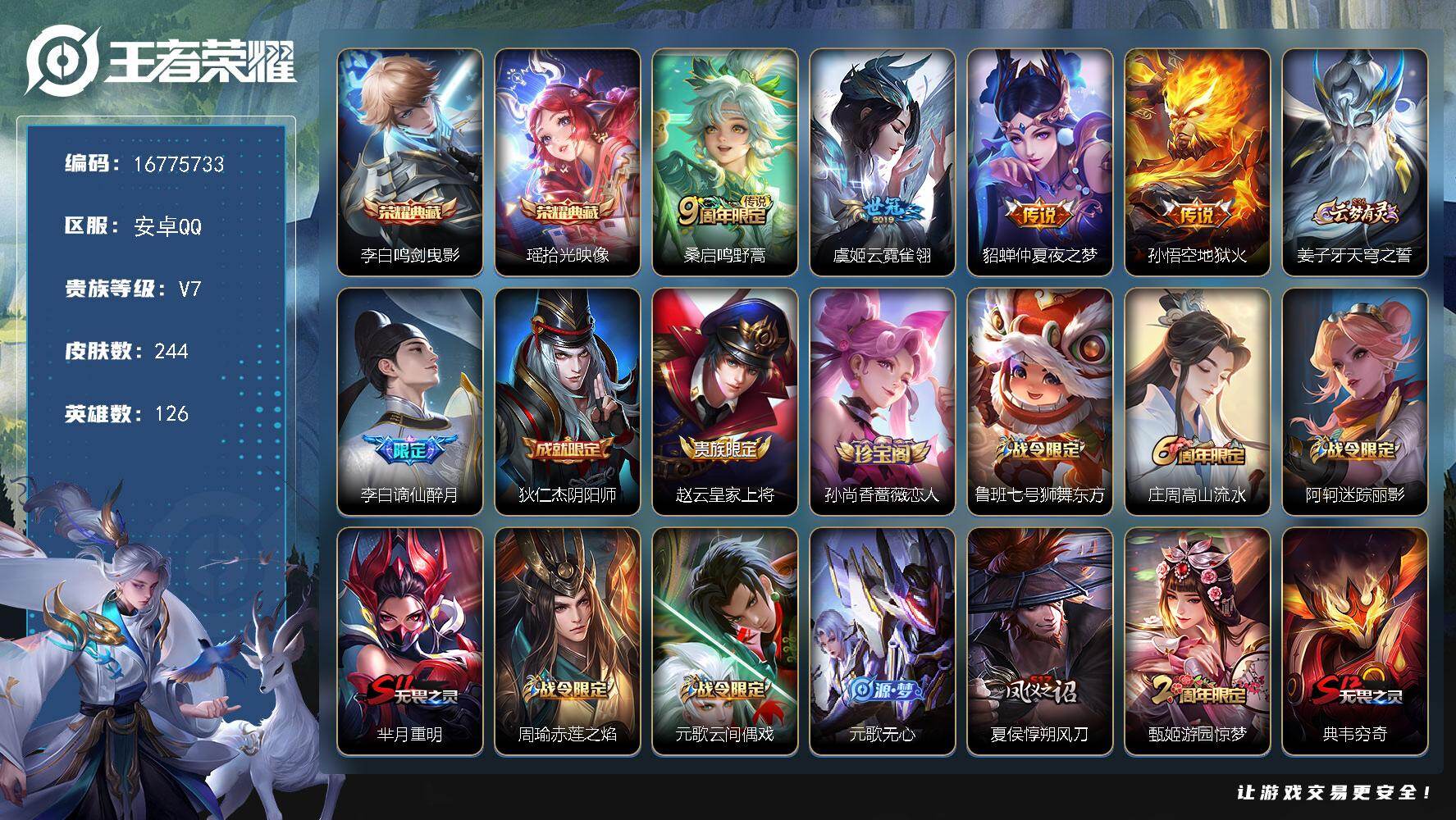 【16775733】安卓Q-V0-永恒钻石V段位-126英雄-244皮肤-2典