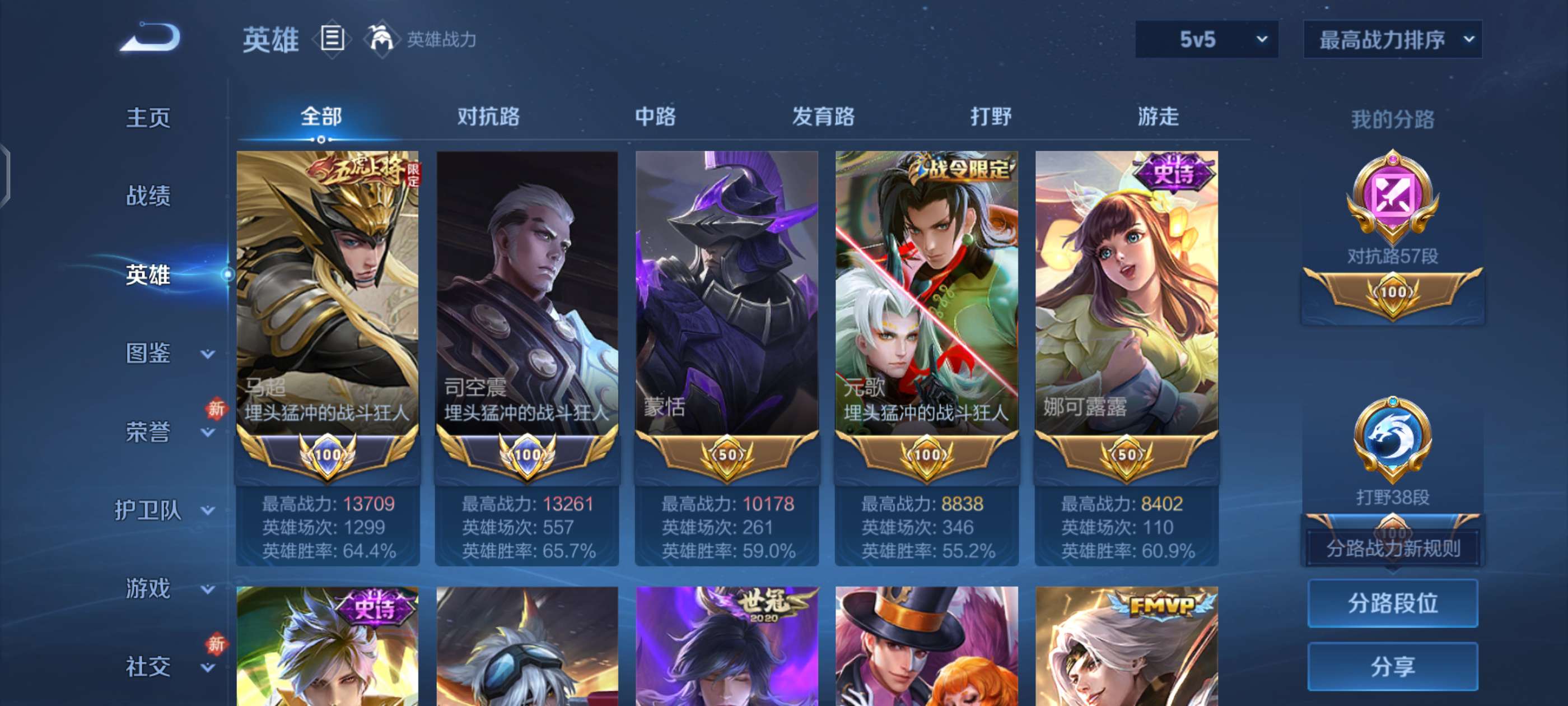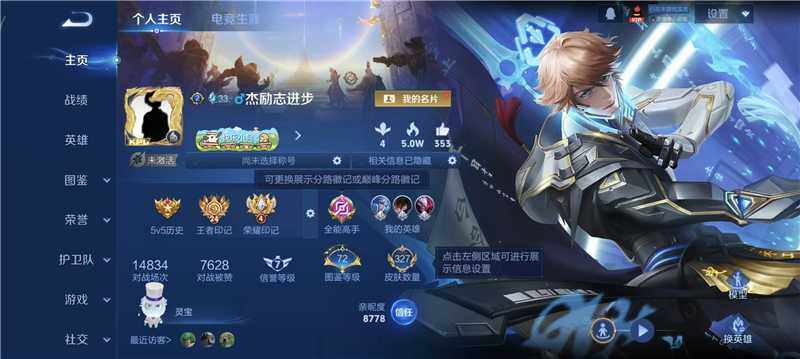 V8-最强王者段位-127英雄-282皮肤-1典藏皮肤-2无双-1珍品传说-27传说-85史诗