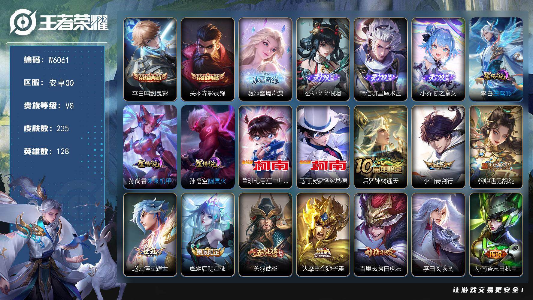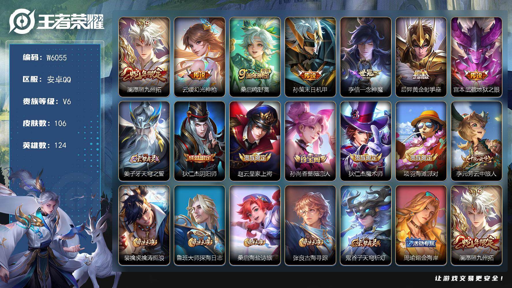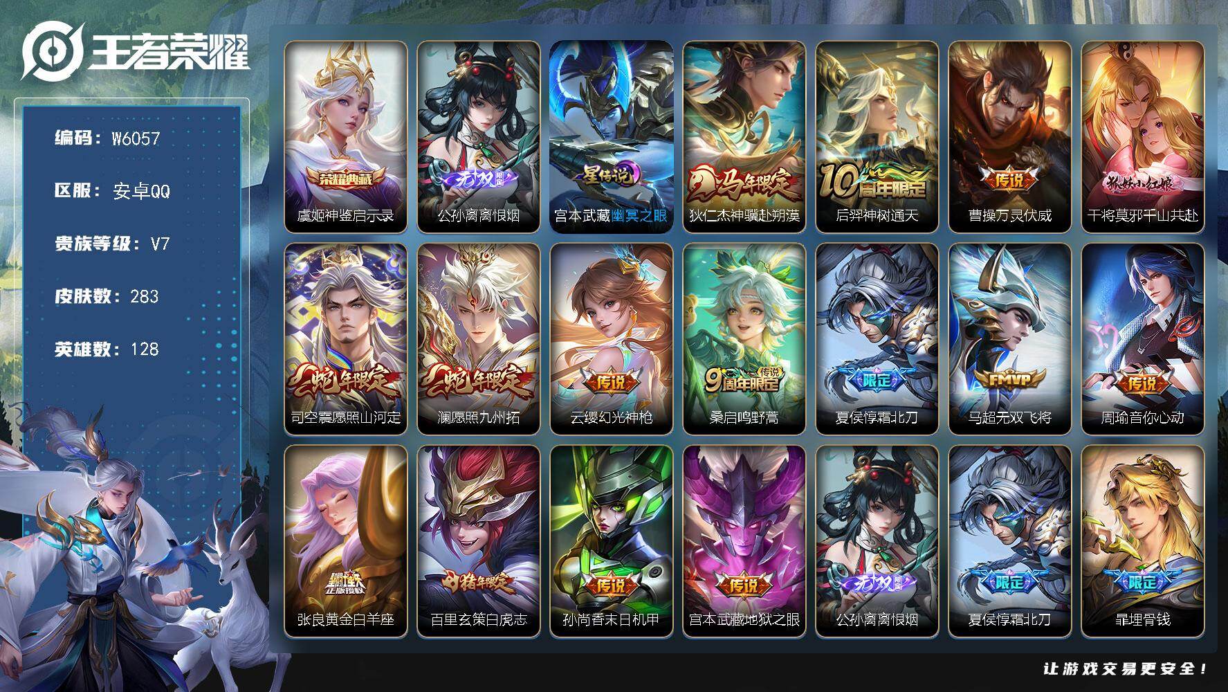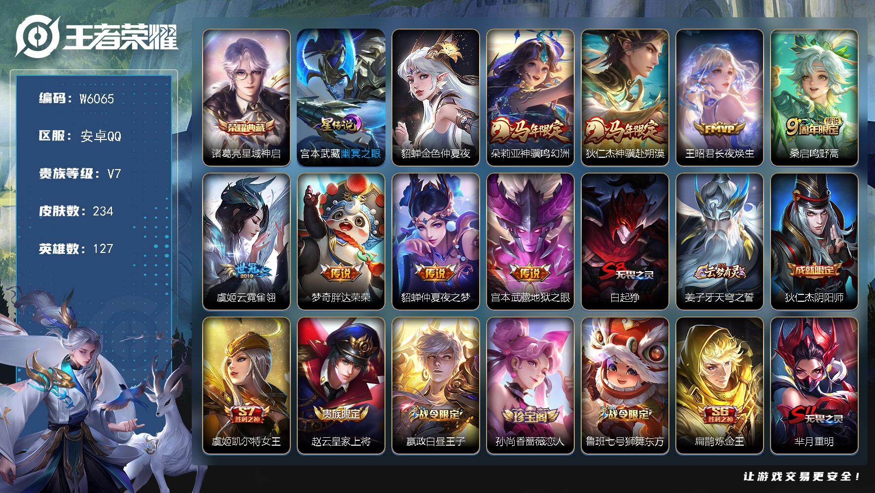 【W6065】【亮点:8.6K场次妹子号】安卓Q-不可二次-贵7-127英雄-