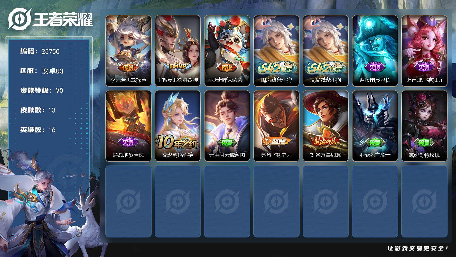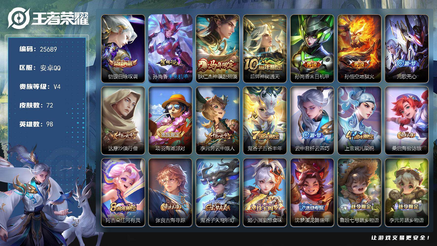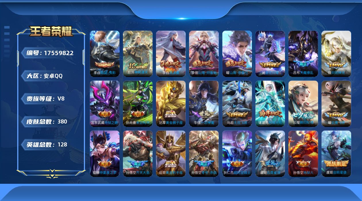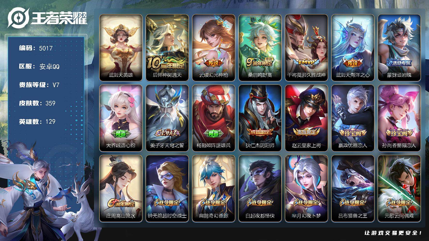 安卓Q-V8-最强王者段位-127英雄-317皮肤-1典藏皮肤-11传说-95