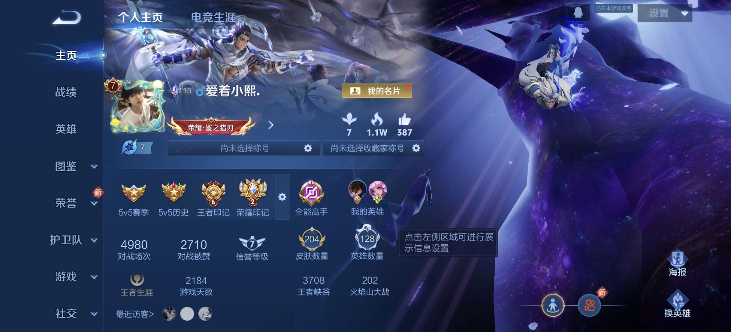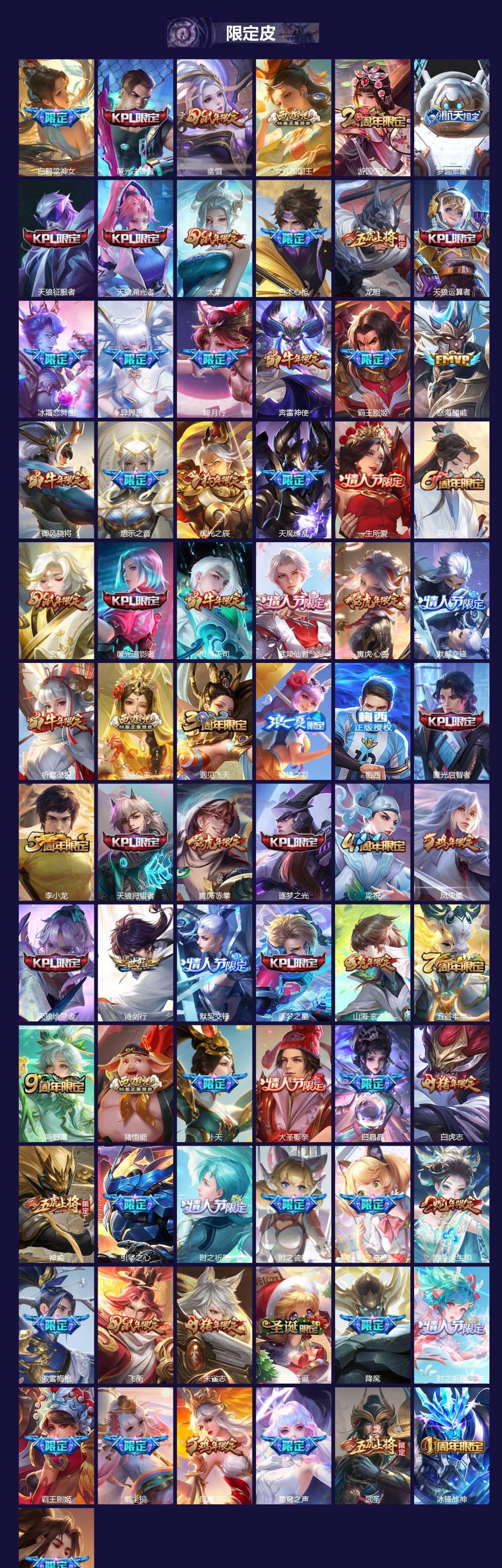贵族7/皮肤205/典藏1/传说8/史诗50/英雄127/