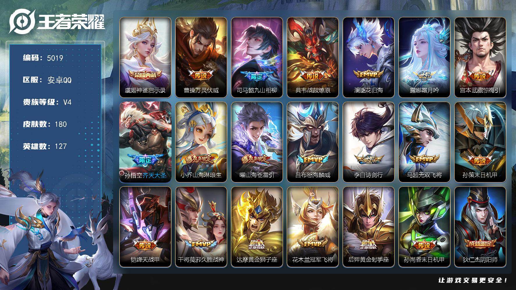安卓Q-V4-最强王者段位-127英雄-180皮肤-1典藏皮肤-19传说-45