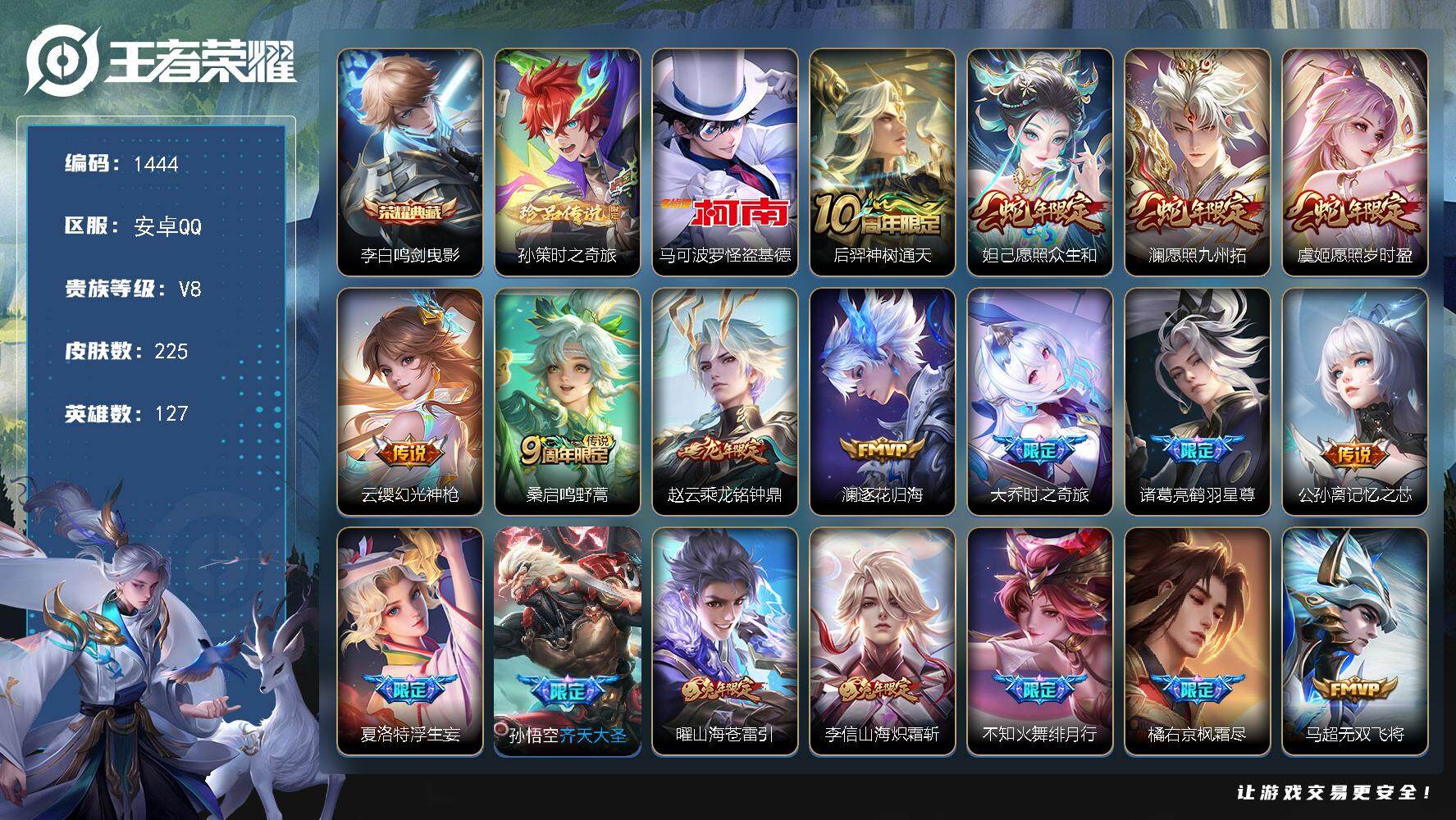 V8-至尊星耀III段位-127英雄-225皮肤-1典藏皮肤-2珍品传说