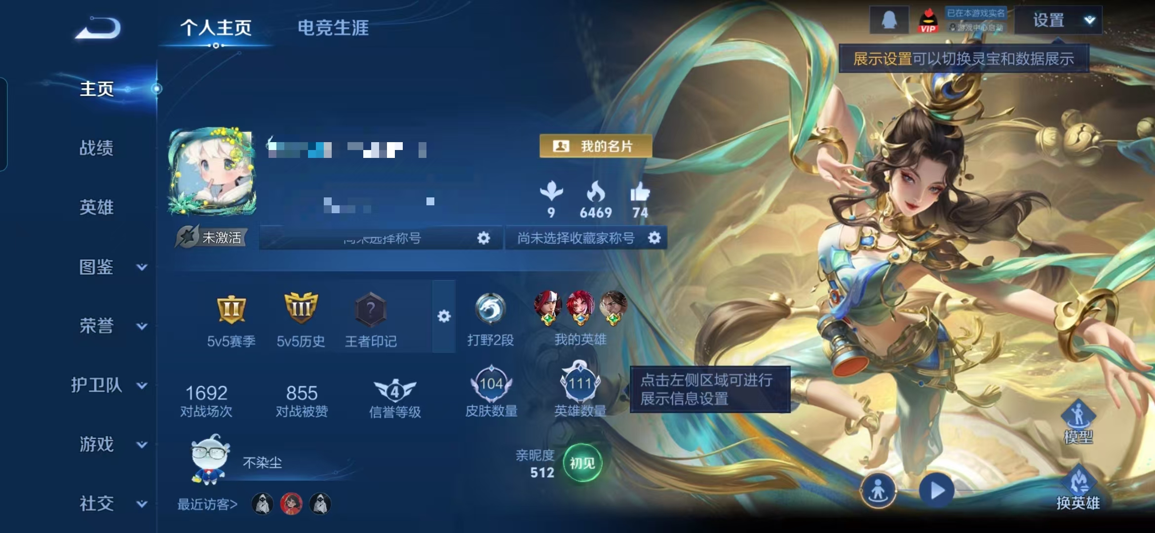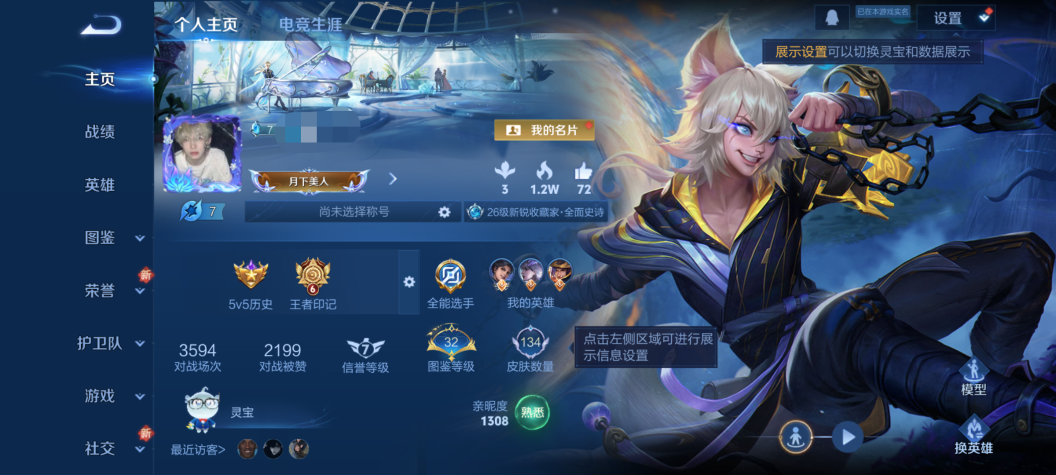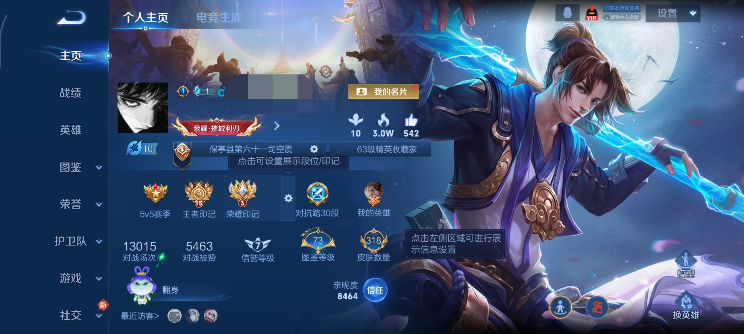 V6 1典藏 1无双 8传说 126英雄 228皮肤 可修改实名 有社交场景限制