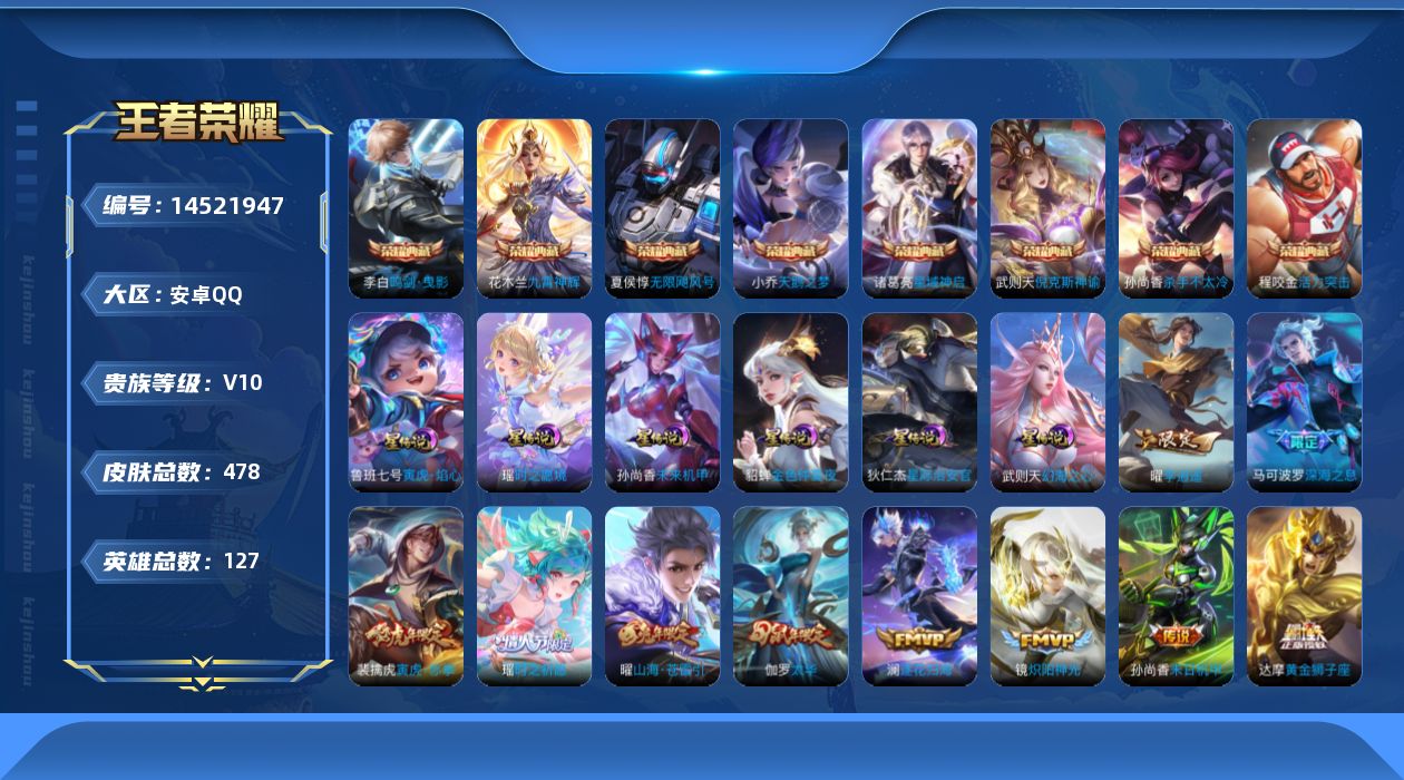 kyv10!可认证安卓(q)区478皮9典藏54传说6星186限定16王者印记.亮点;九霄神辉 星域