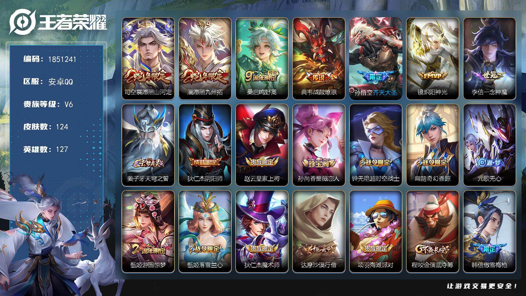 V8 1无双 24传说 126英雄 208皮肤 可修改实名 【英雄全皮】李信全