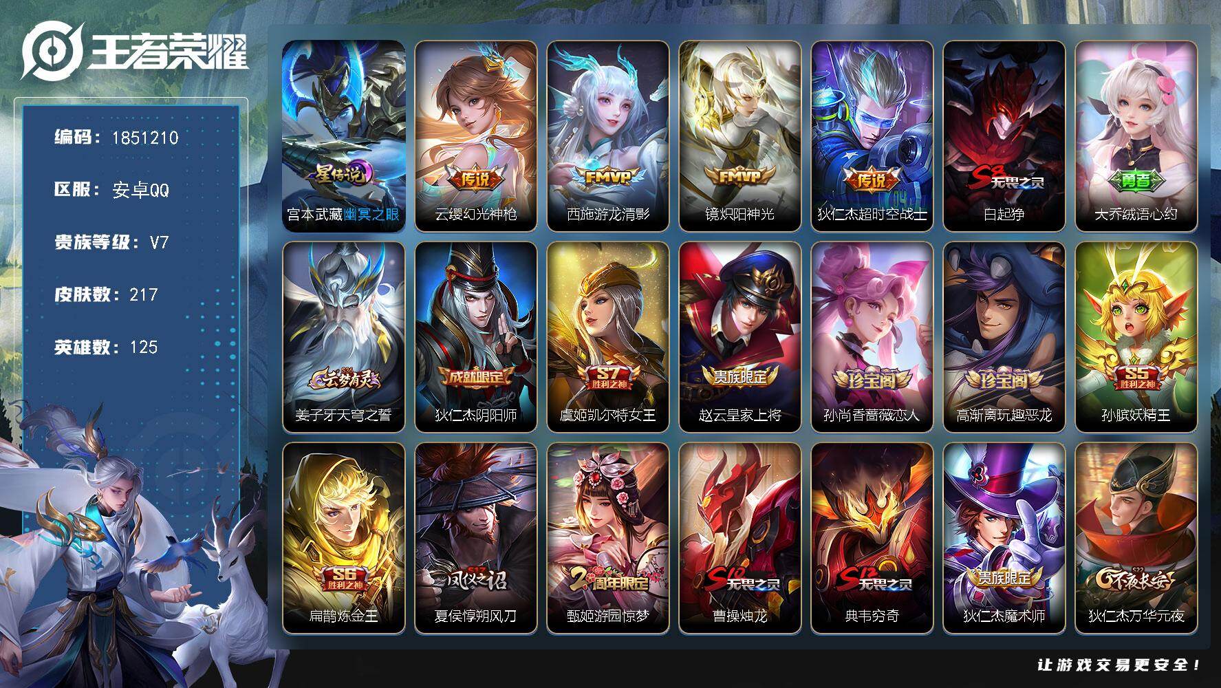 王者荣耀账号,V7,和平号一起的