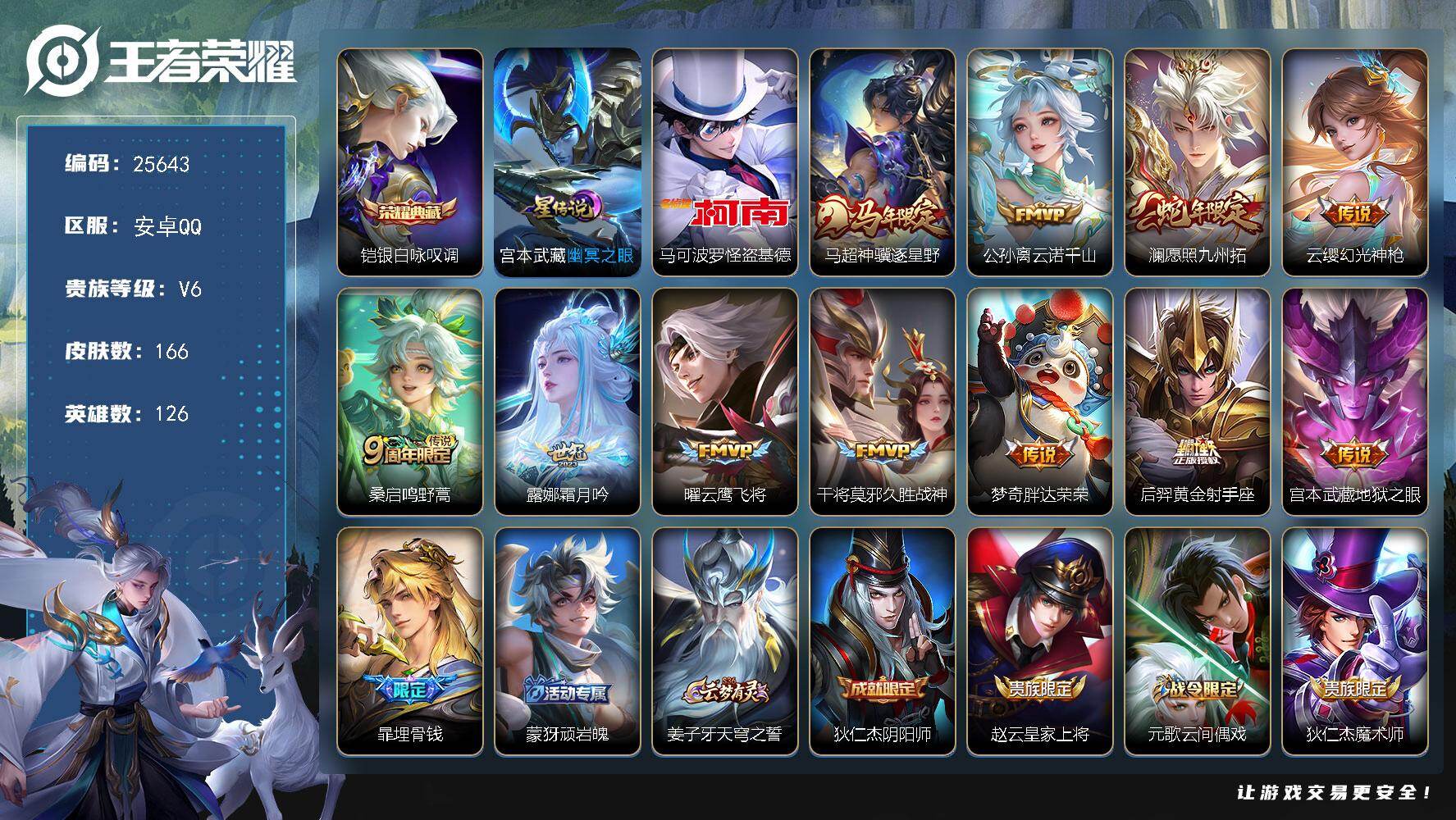 【山河定235皮肤7传说1星元 秒换绑不用等】安卓QQ-128英雄-235皮肤【