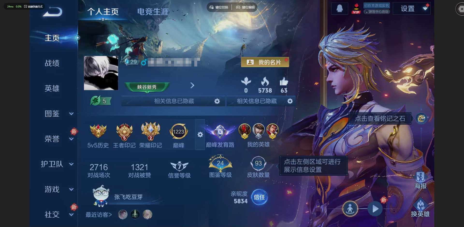 【金标张飞 金标白起】贵族等级: V6 英雄数: 105 皮肤数: 93 无双