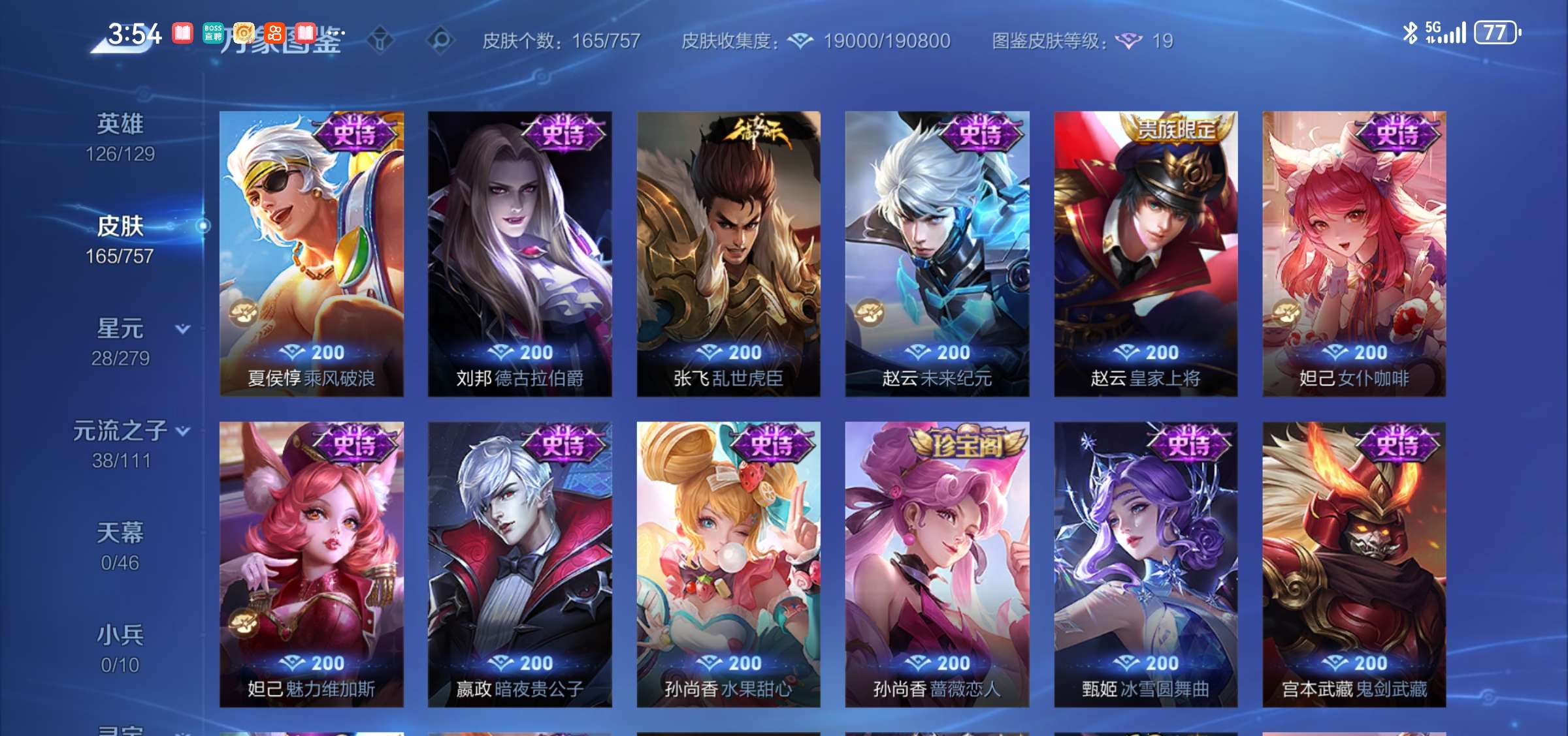 V6 皮肤207 英雄129 至尊星耀 荣耀典藏1 星传说1 传说6 其他皮肤206
