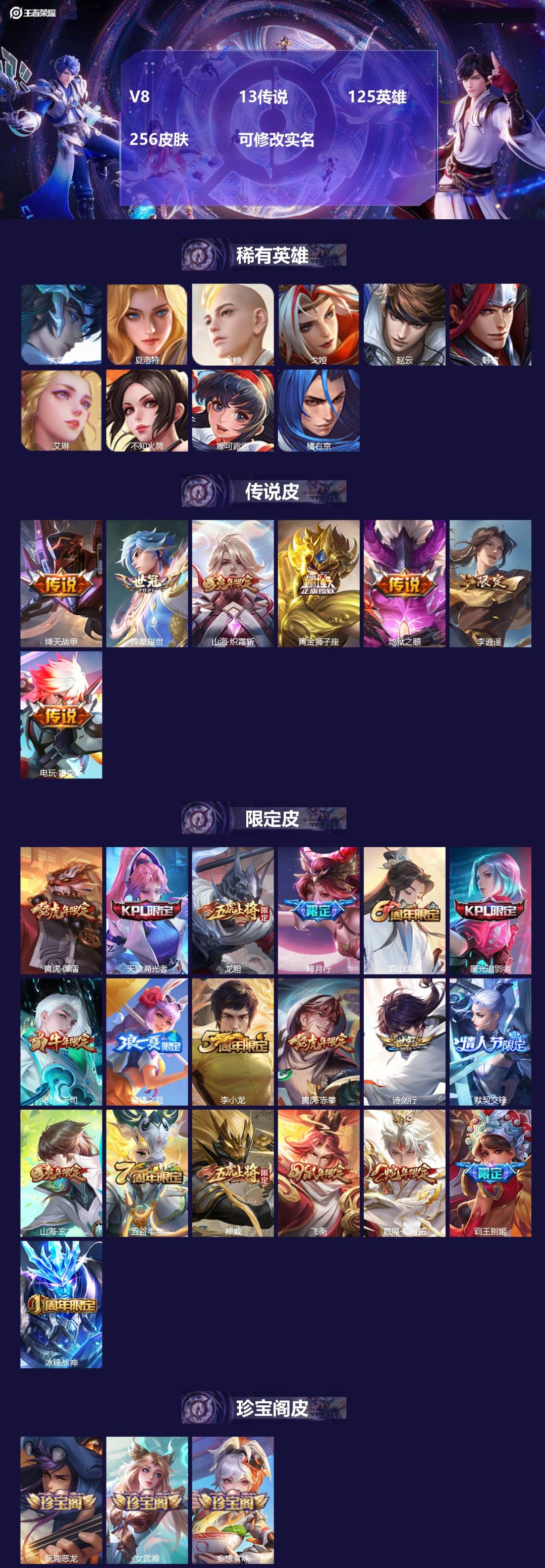 V8 13传说 125英雄 256皮肤 可修改实名