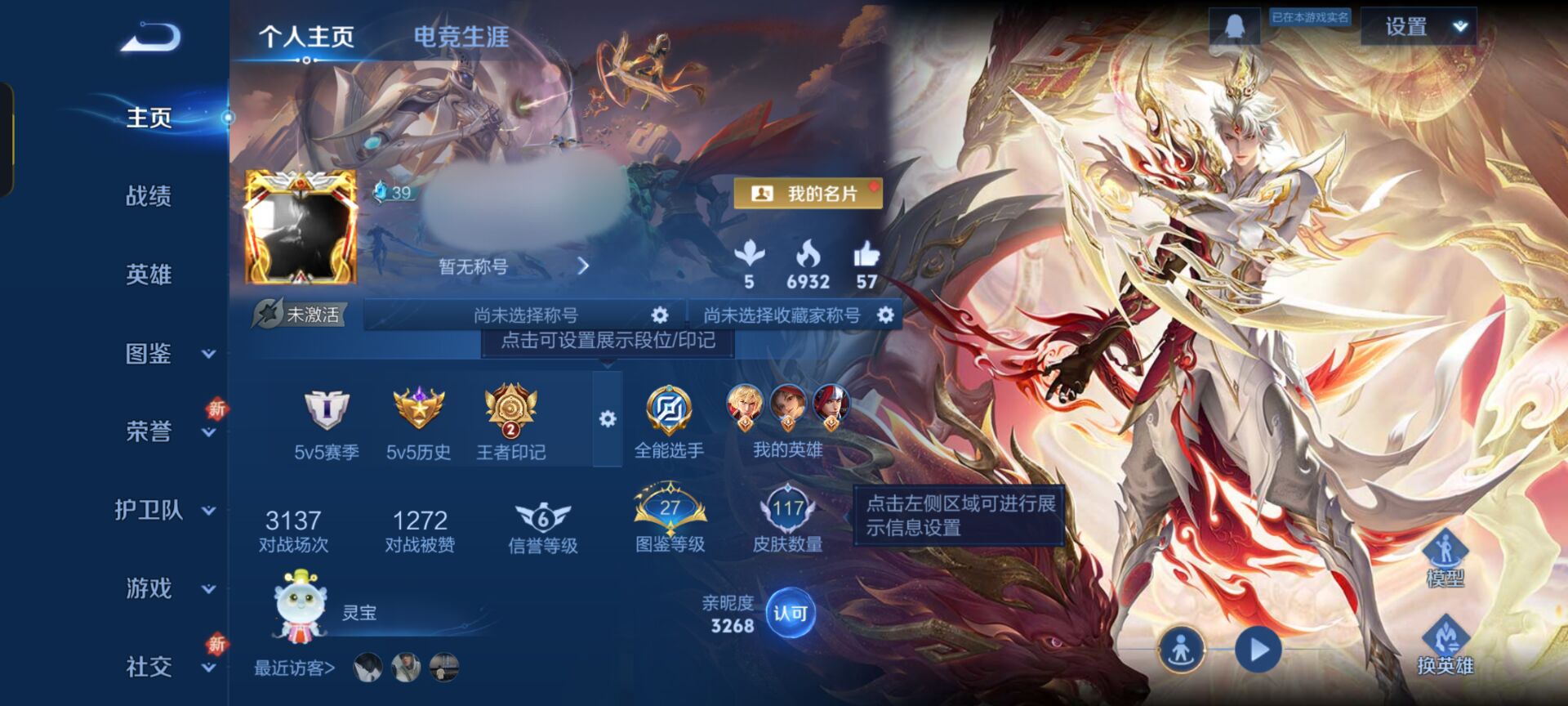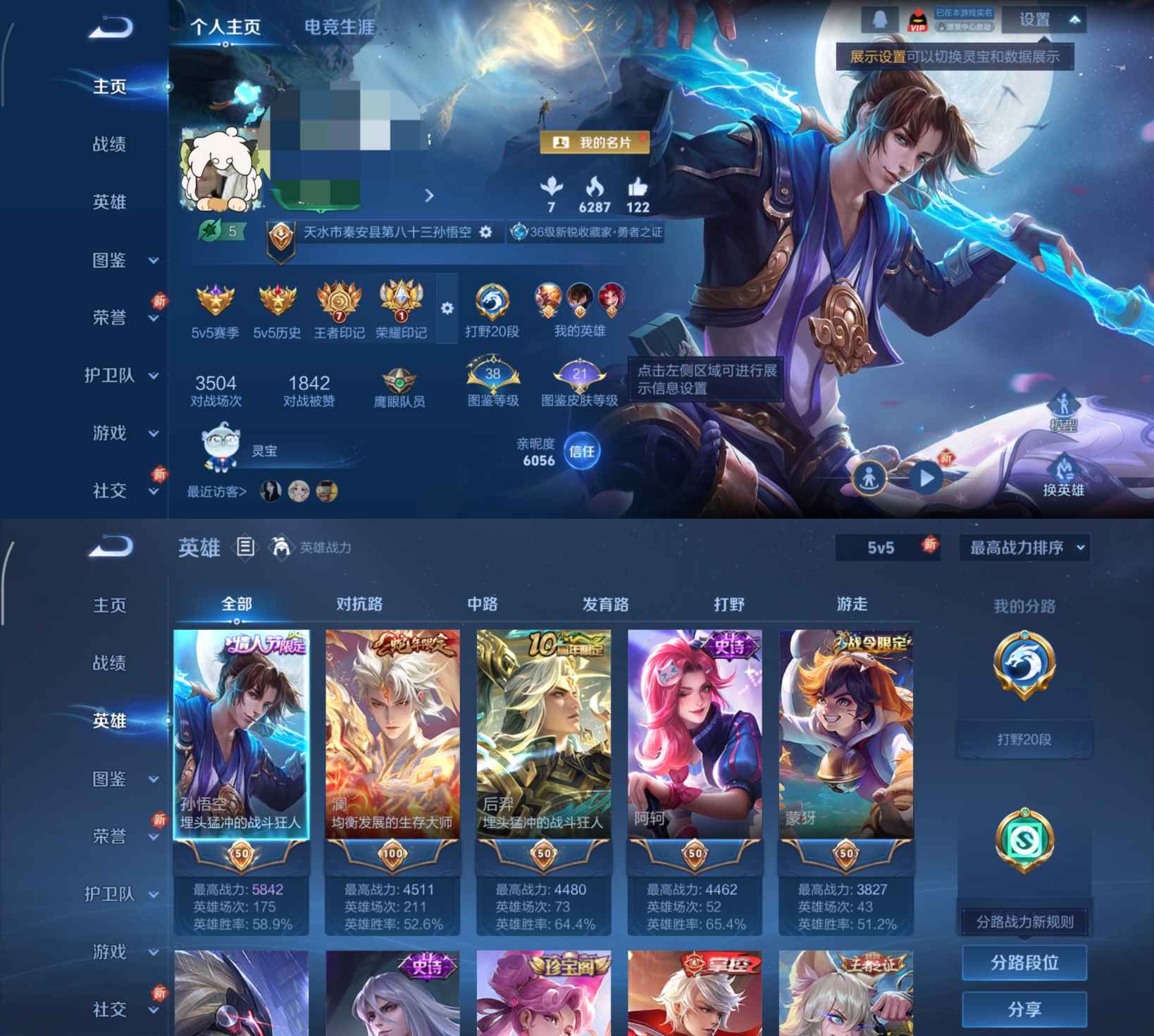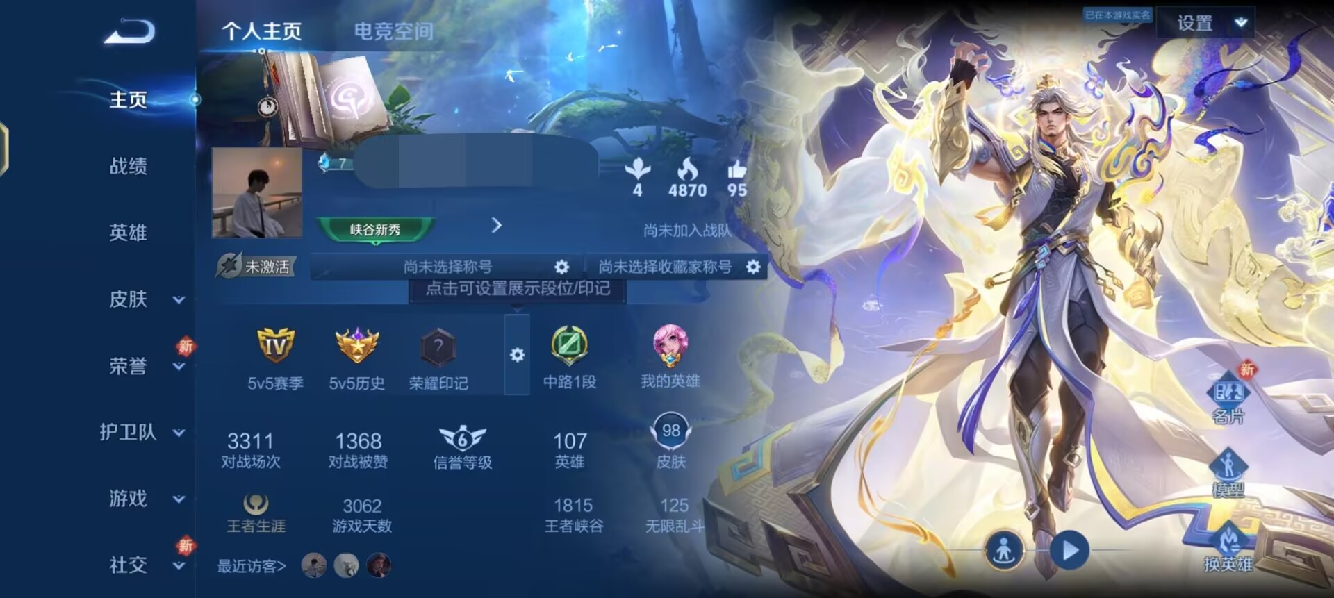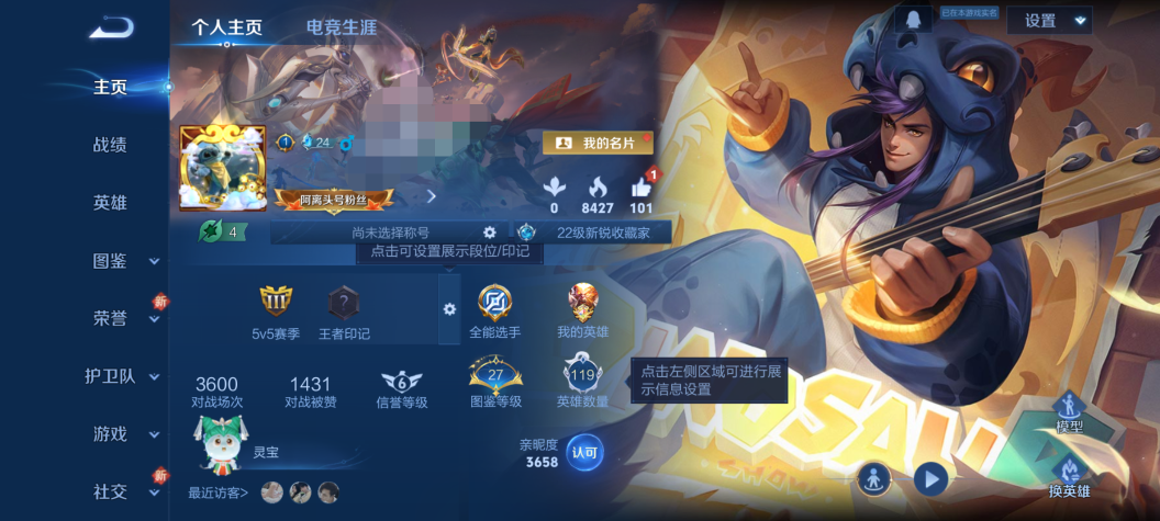 尊贵铂金IV-123英雄-116皮肤-4传说-27史诗
