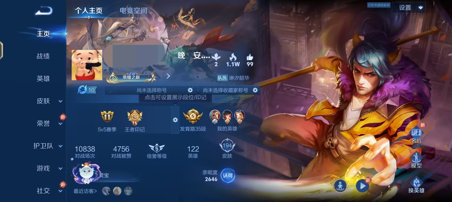 最强王者-122英雄-109皮肤-1典藏-4传说-25史诗