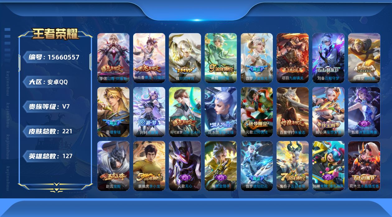 【15660557】[15660557]【精品号手慢无】 221皮肤 6传说
