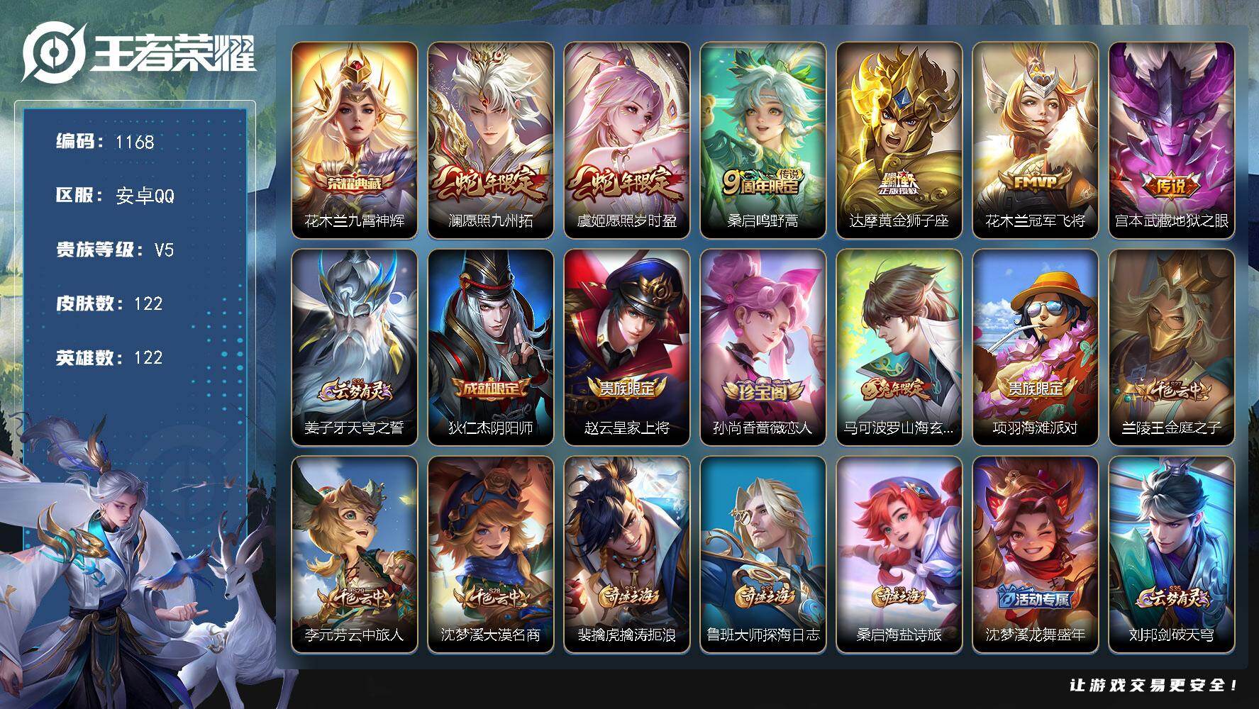 安卓Q-V5--122皮肤-1典藏皮肤-6传说-34史诗-1星传说【荣耀典藏