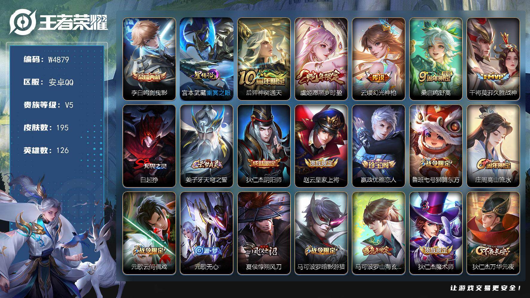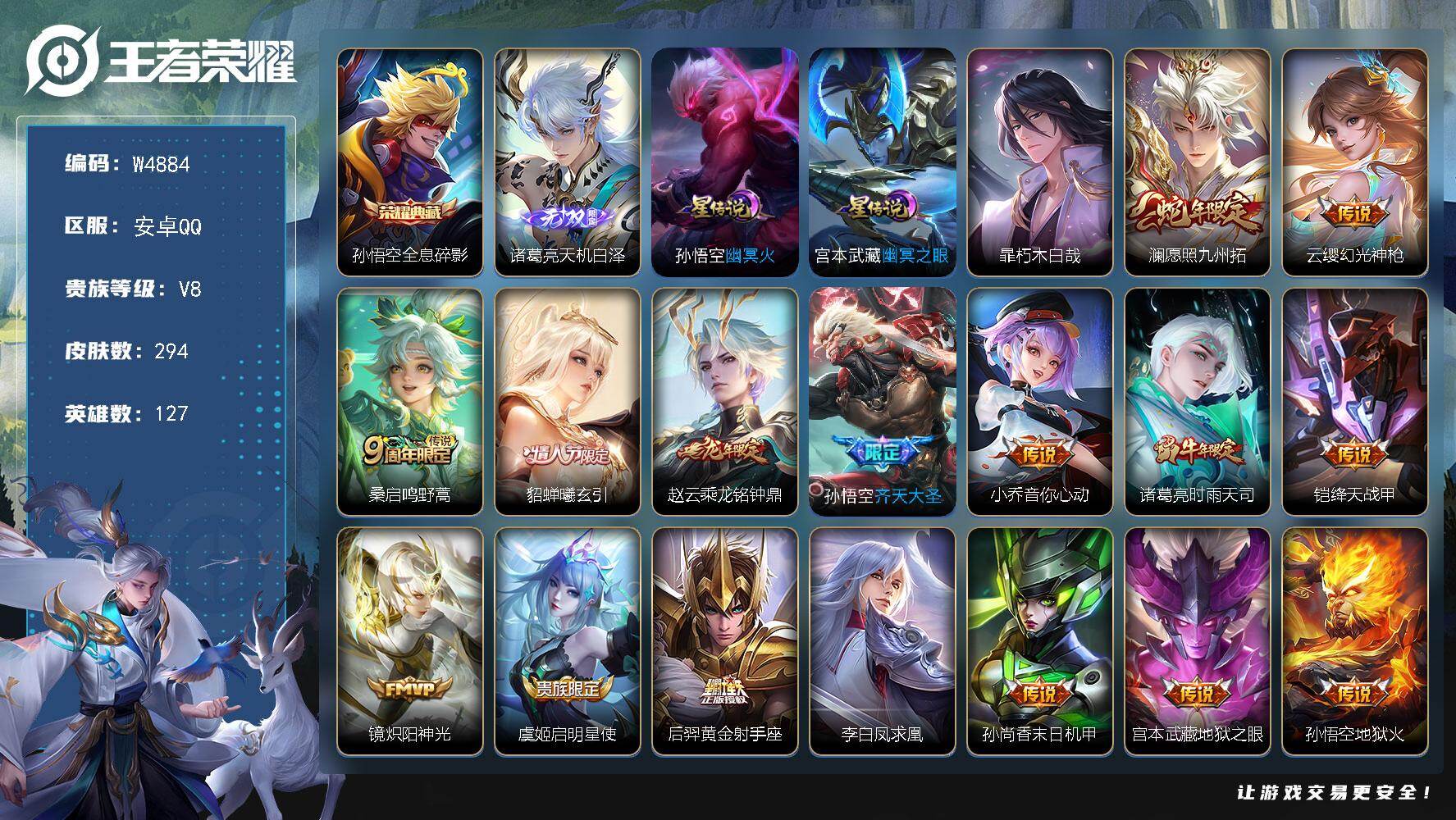 【W4884】极品打野号-1金标-满铭文(热门皮肤)天机白泽.全息碎影.朽木白