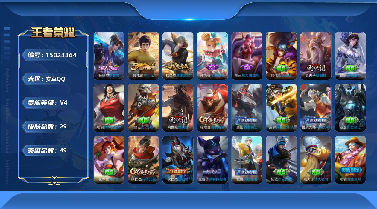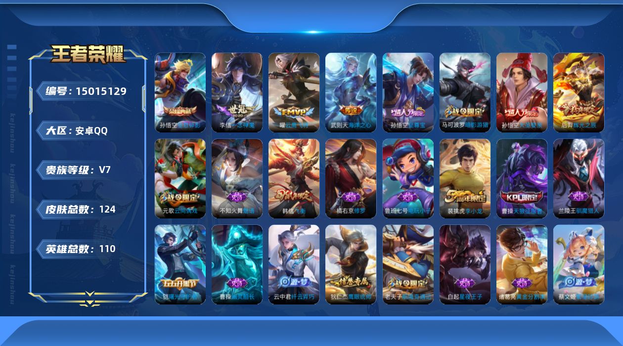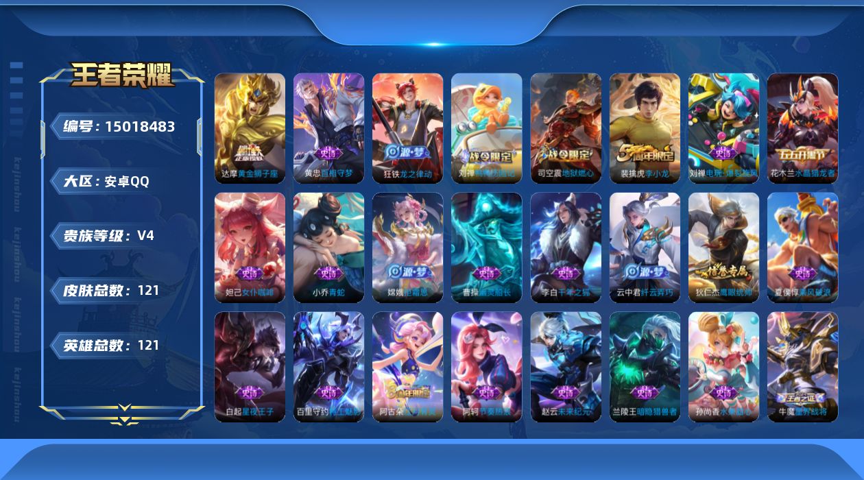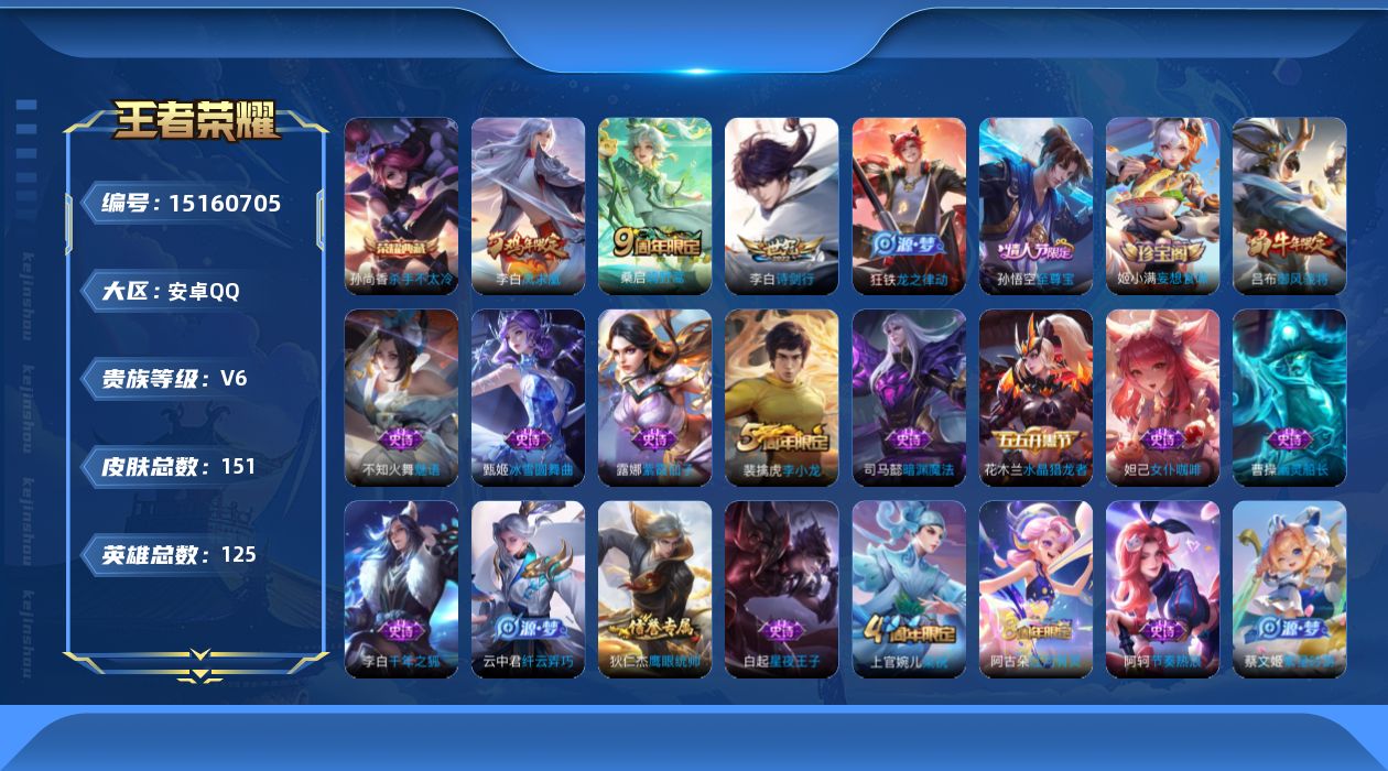 1970482 王者荣耀账号 安卓Q-V0-至尊星耀IV段位-125英雄-15
