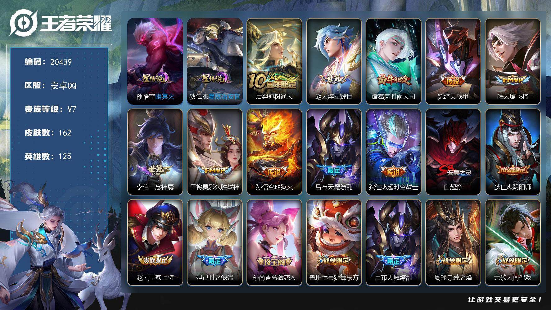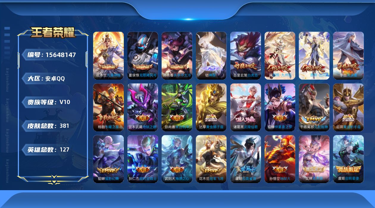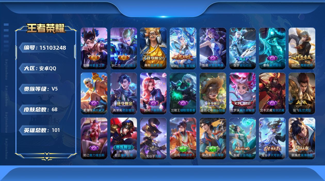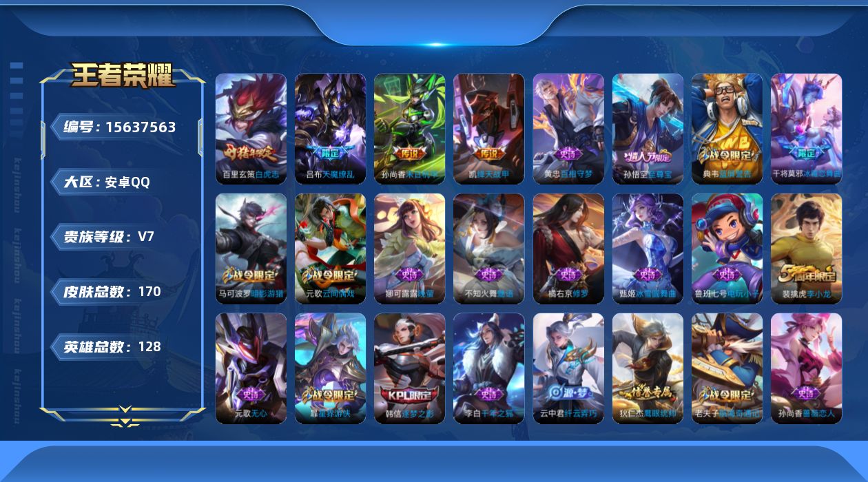 1970482 王者荣耀账号 安卓Q-V0-至尊星耀IV段位-125英雄-15