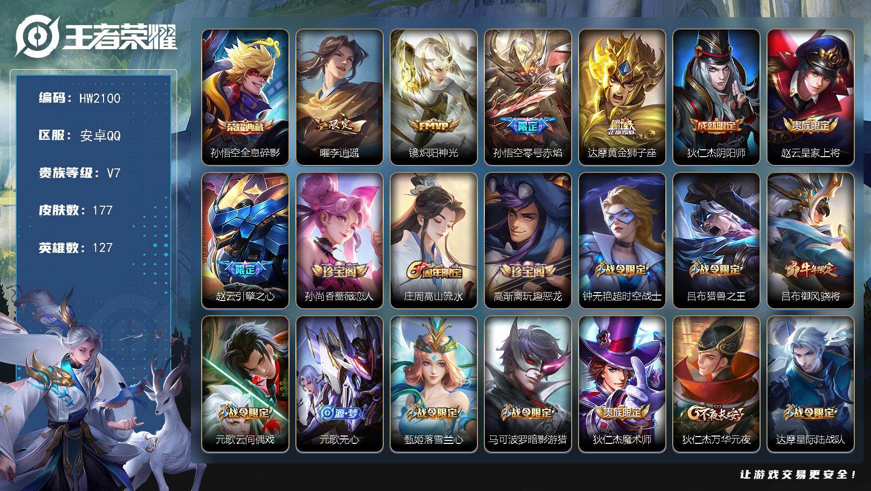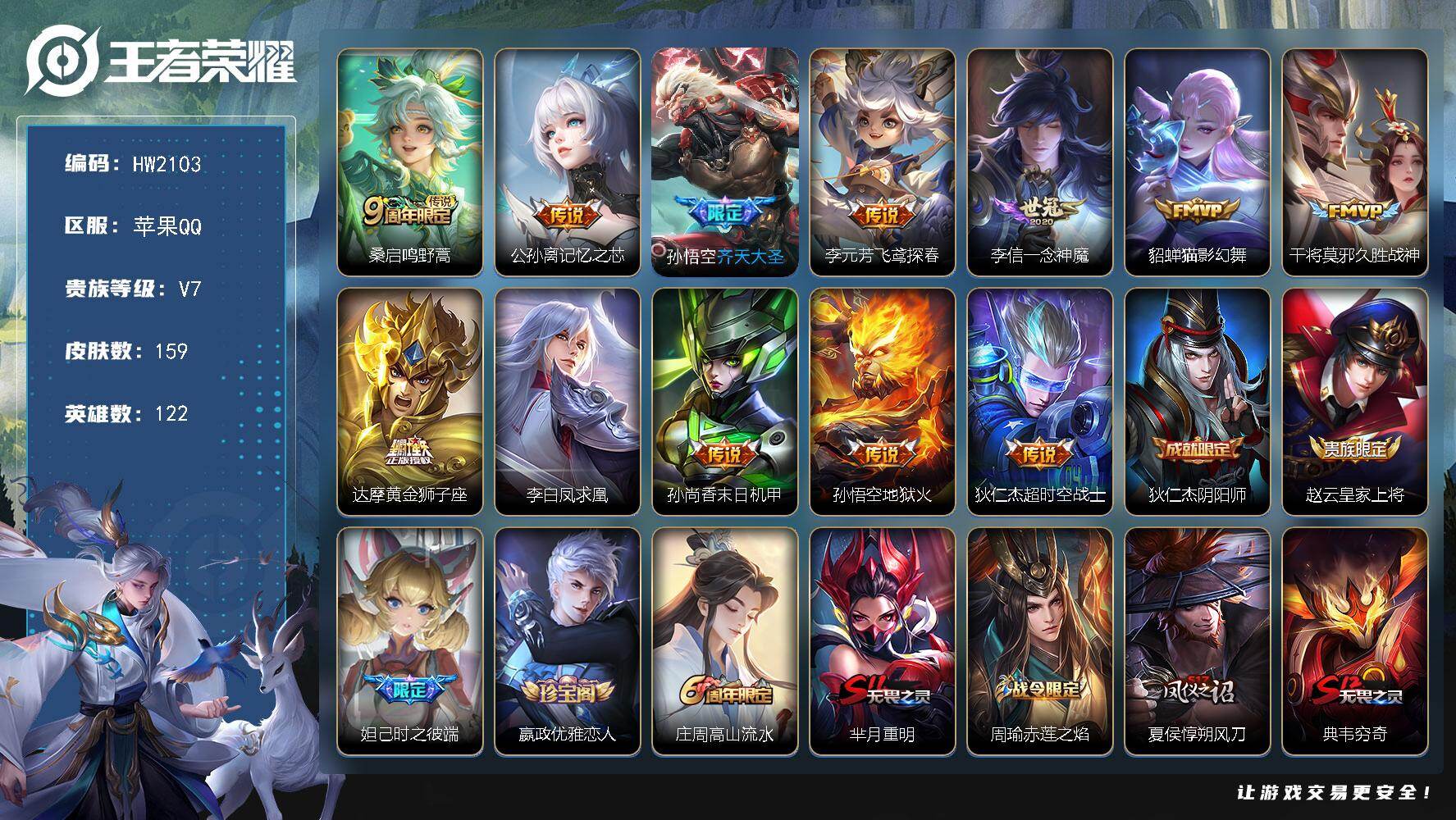 iOS/V7-159皮肤12传说43史诗/记忆之芯/齐天大圣/飞鸢探春/一念神