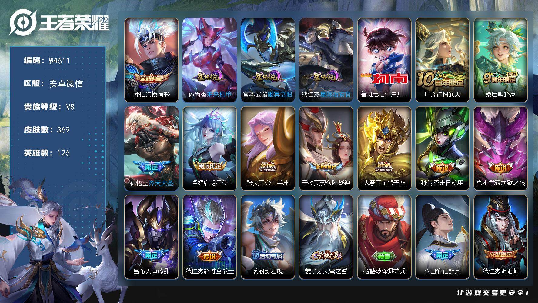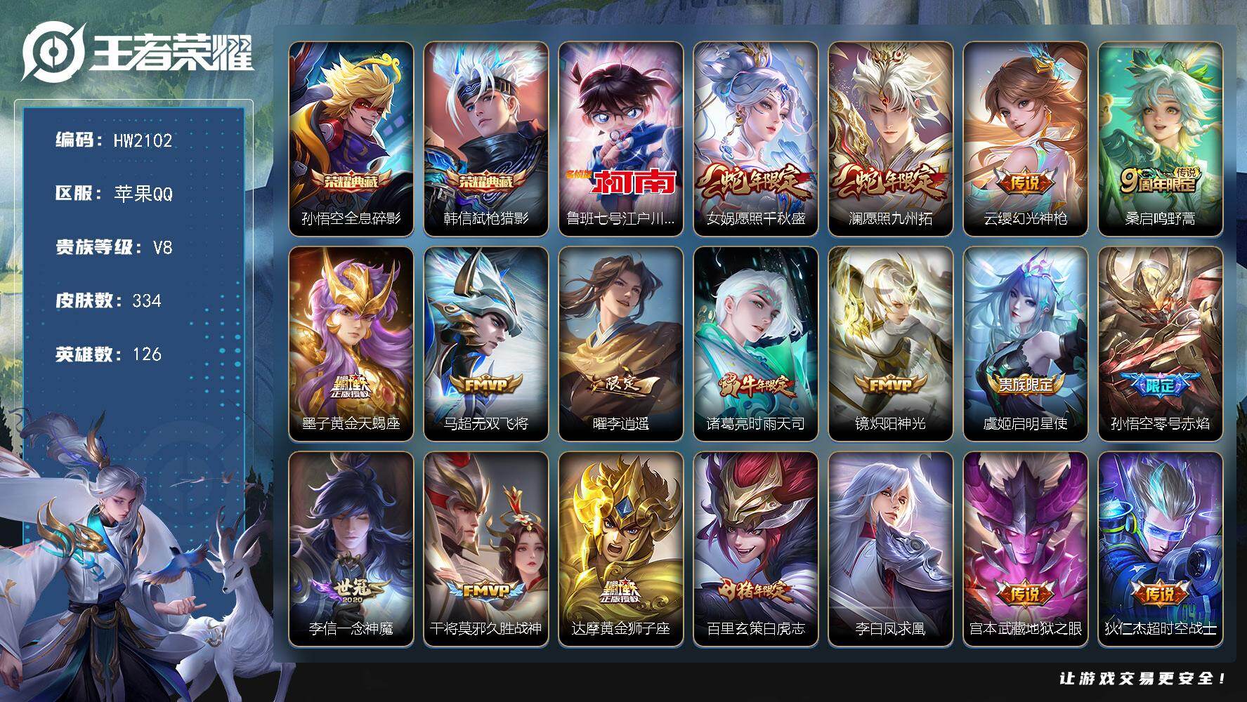 iOS/V8-334皮肤2典藏1珍品传说18传说/全息碎影/弑枪猎影/江户川柯