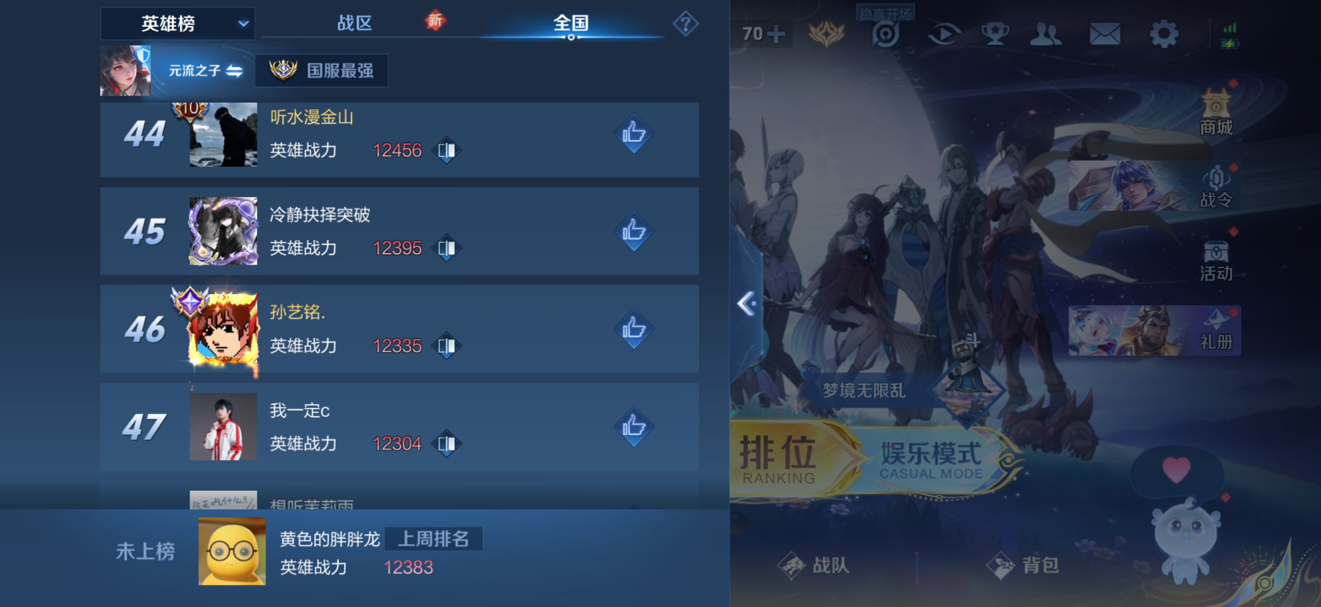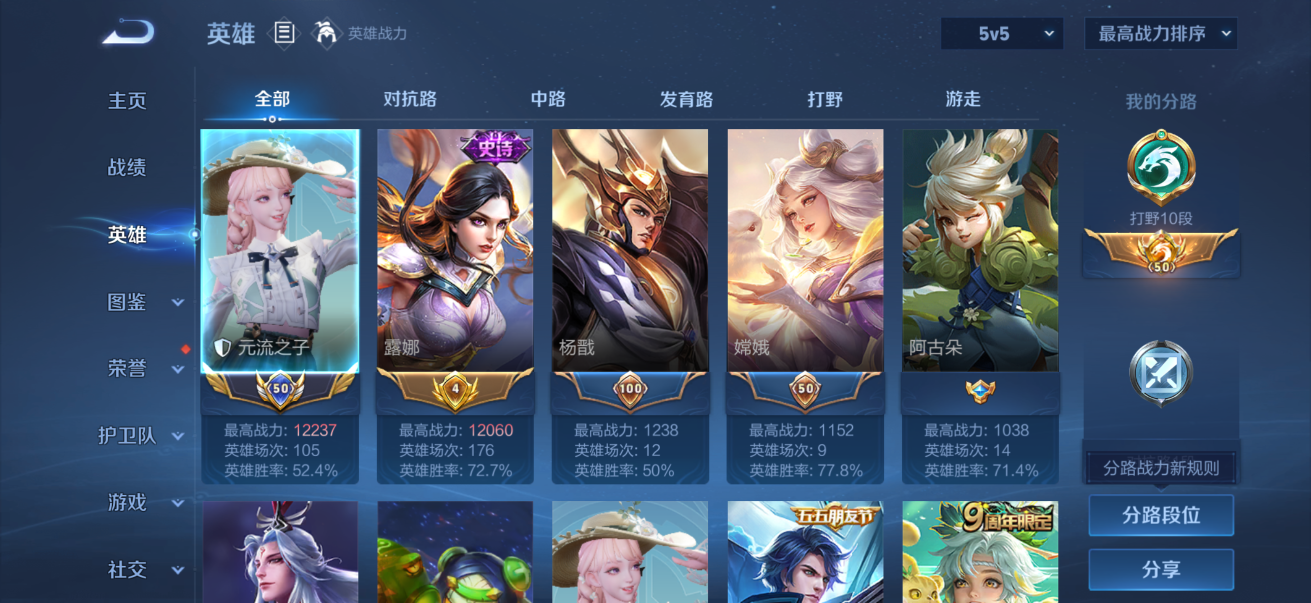 安卓抢先服 皮肤34 英雄128 传说2 其他皮肤11-当前传奇王者110星 巅峰最高2061 现在