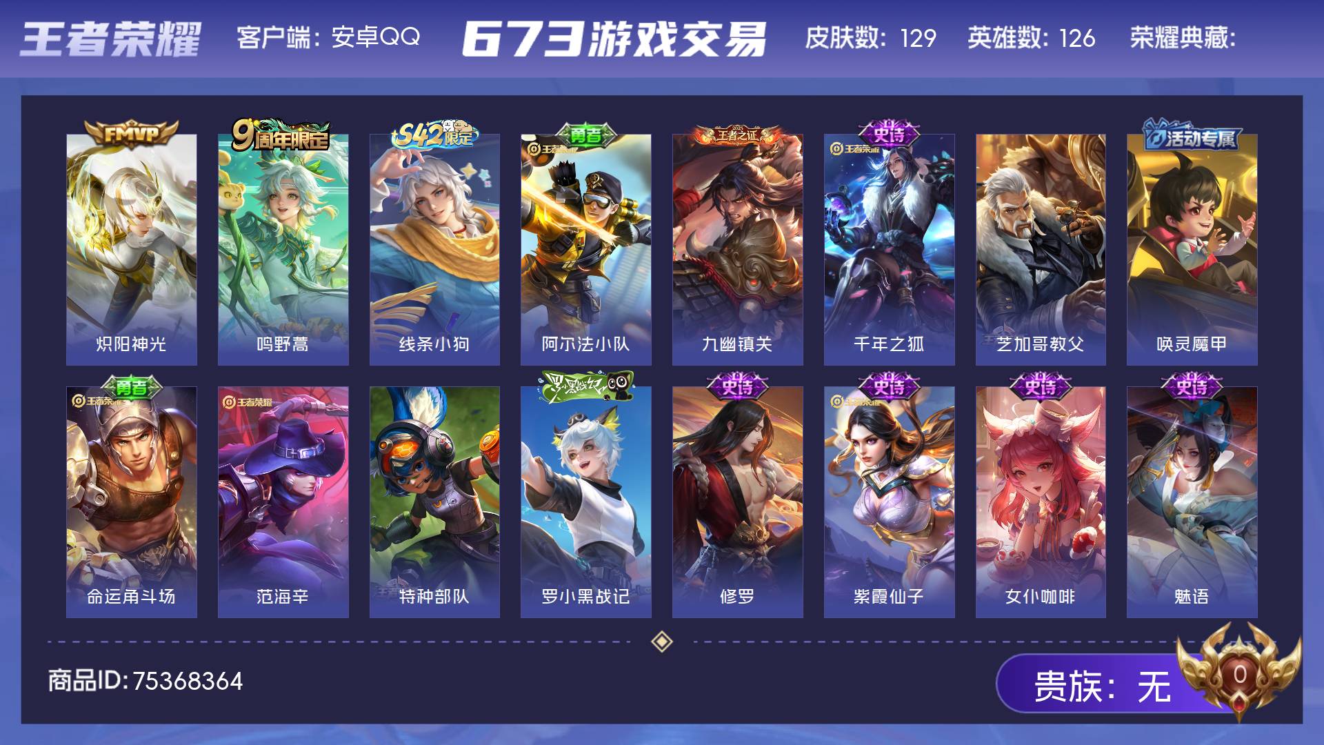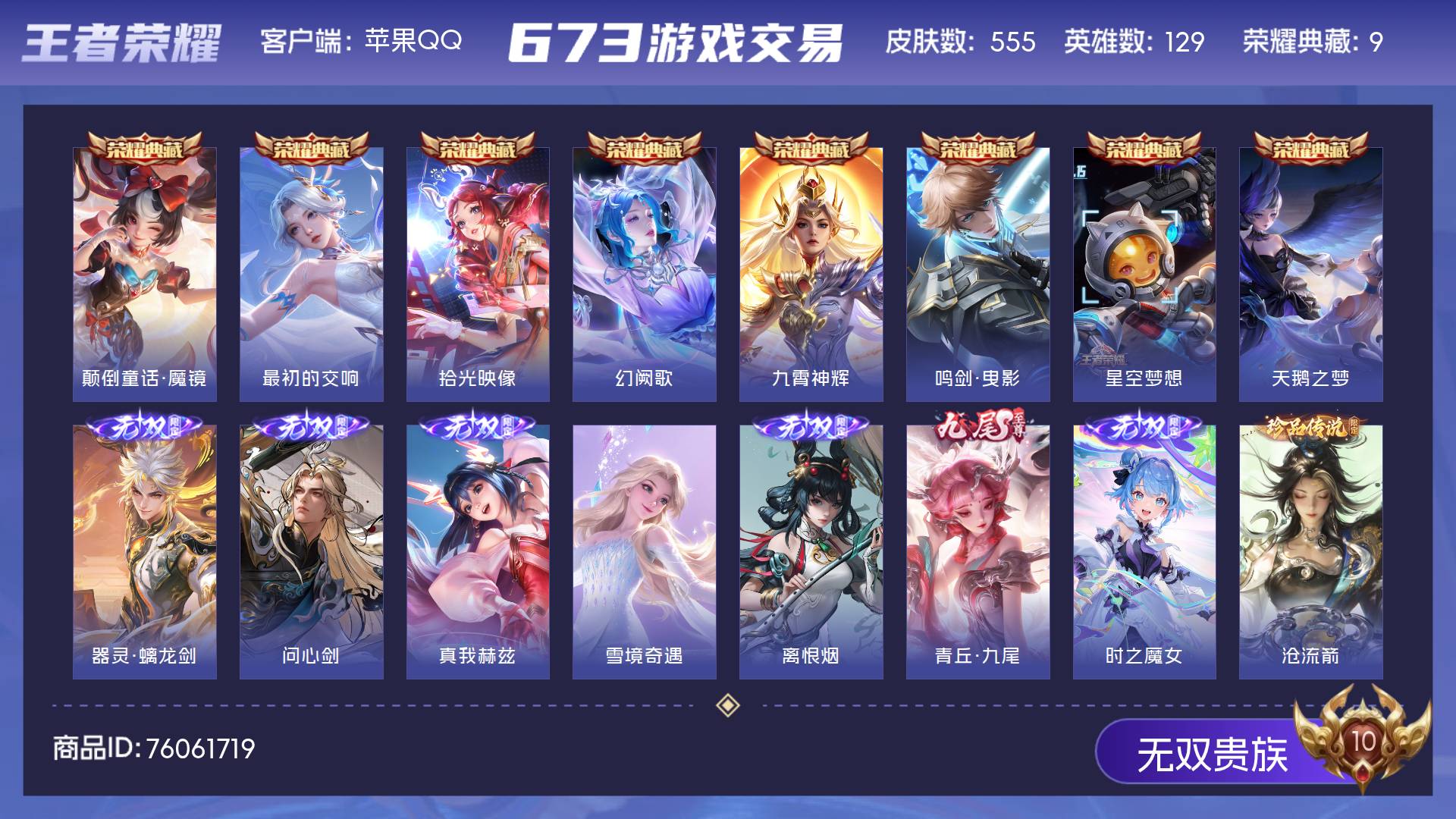 无双贵族 皮肤555 英雄129 荣耀王者 荣耀典藏9 无双皮肤7 珍品传说8 传说85 其他皮肤453