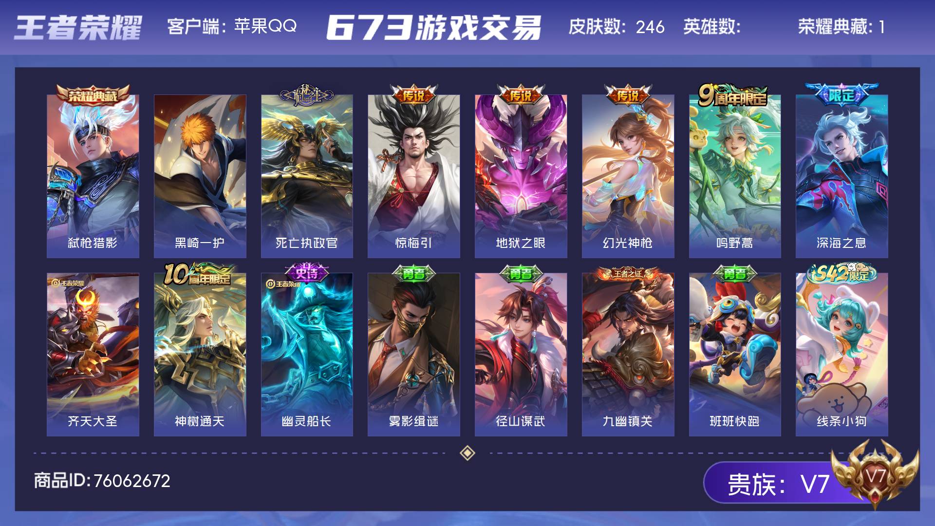V7 皮肤246 无双王者 荣耀典藏1 珍品传说1 星传说2 传说8 其他皮肤243