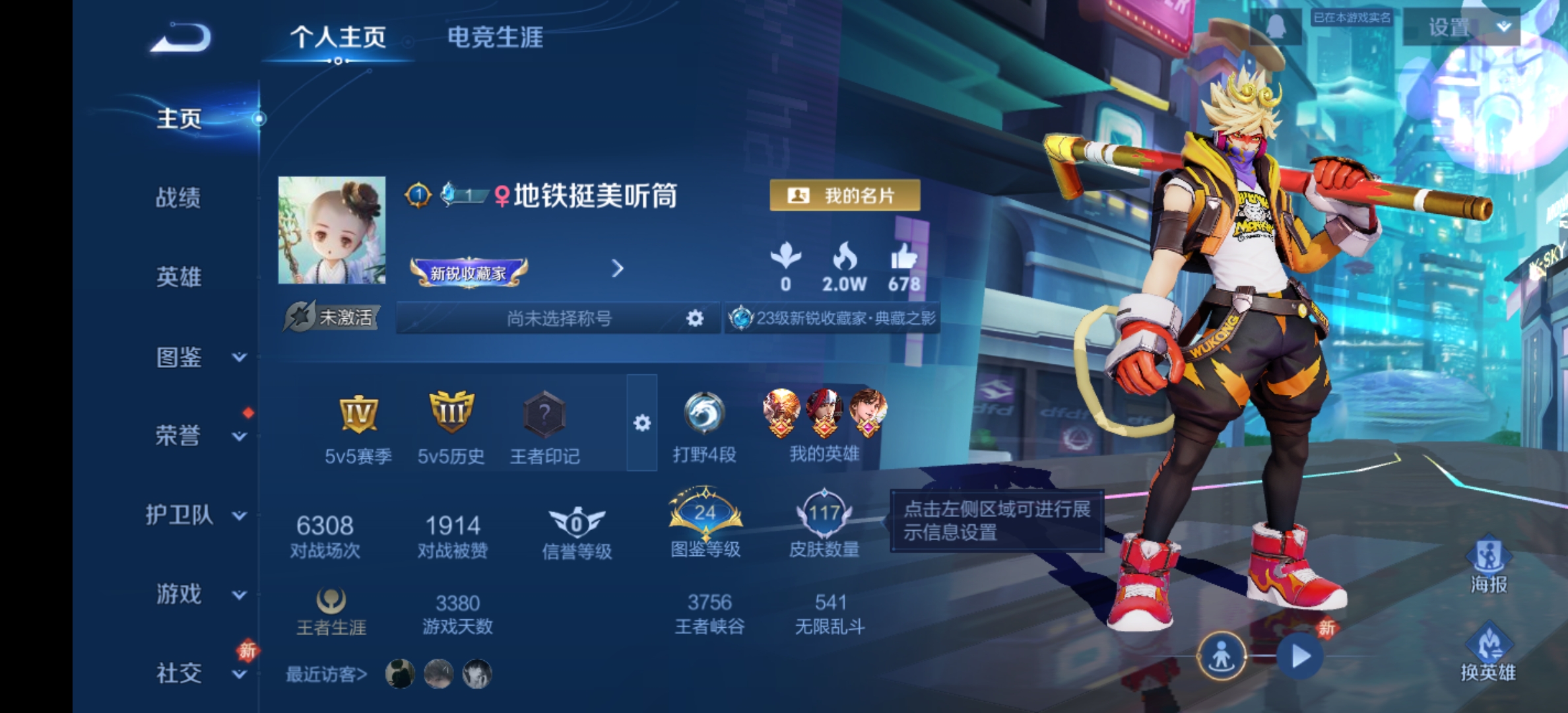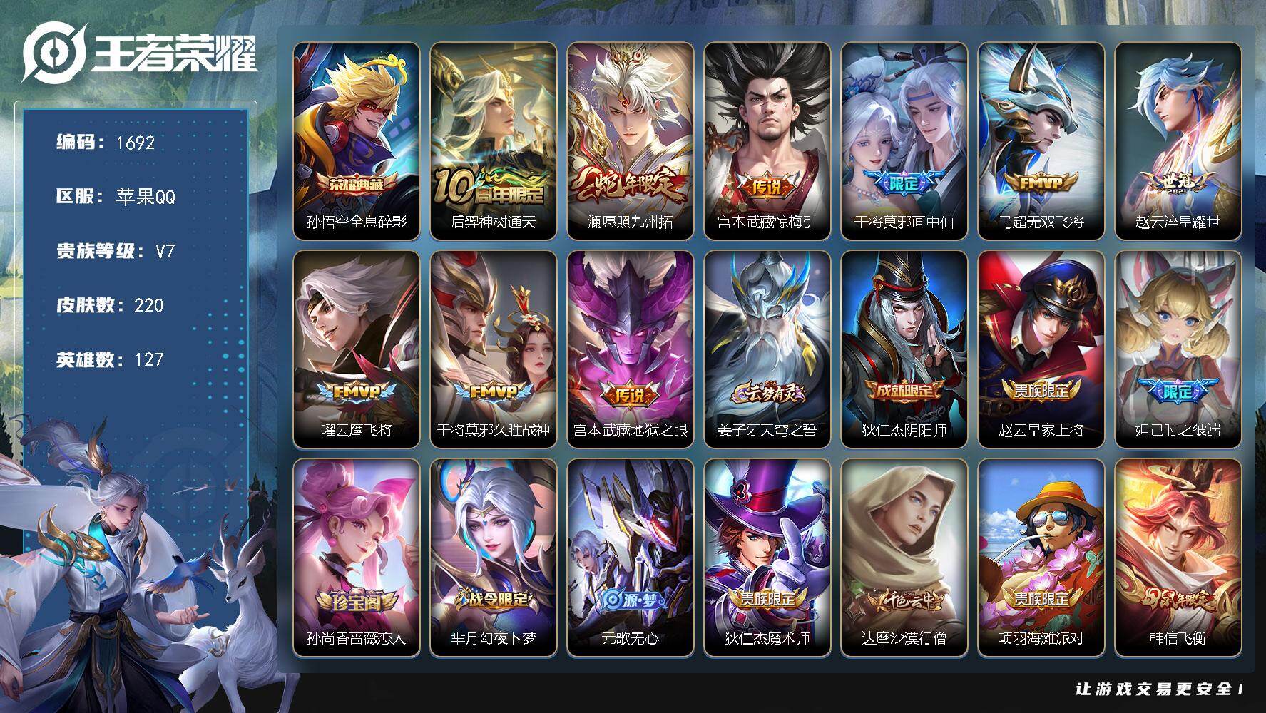 【金标孙悟空】贵族等级: V7 英雄数: 126 皮肤数: 234 珍品传说: