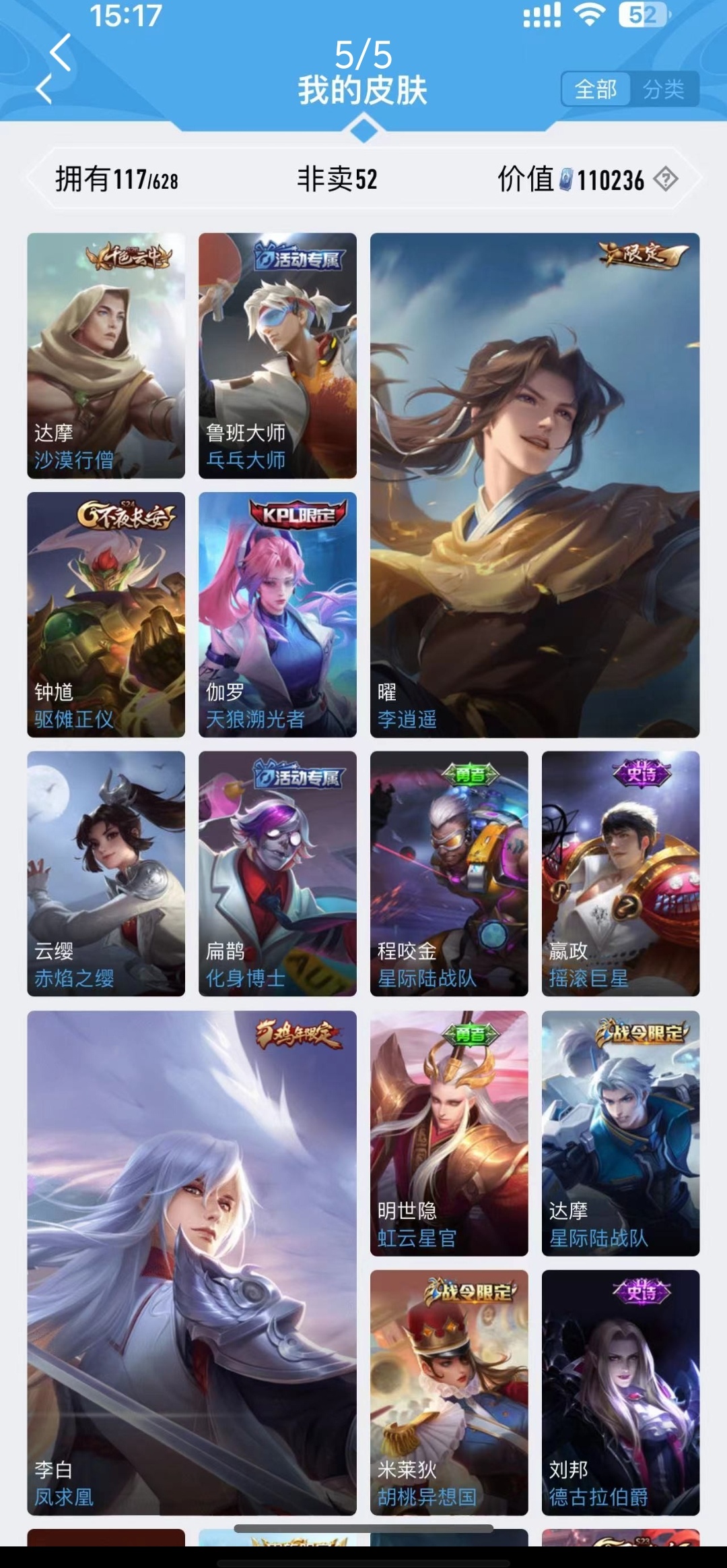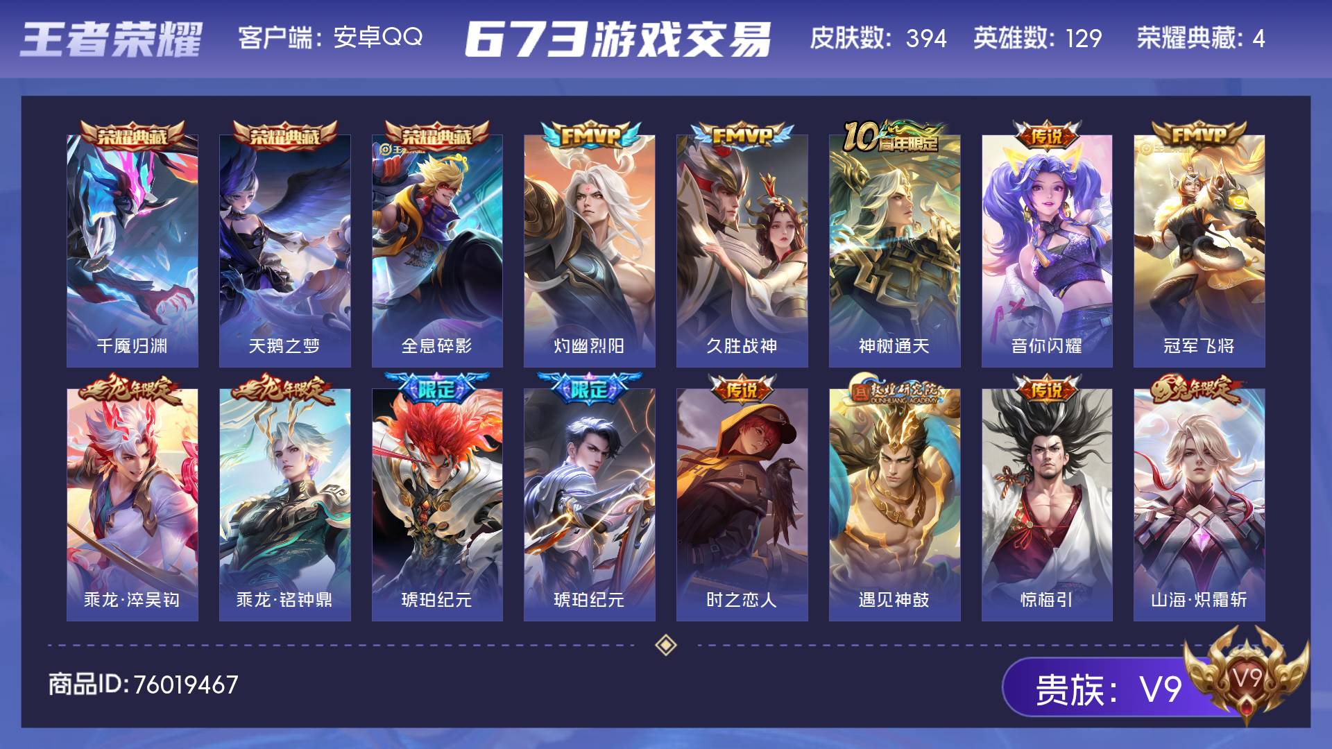 V9 皮肤394 英雄129 最强王者 荣耀典藏4 传说30 其他皮肤368