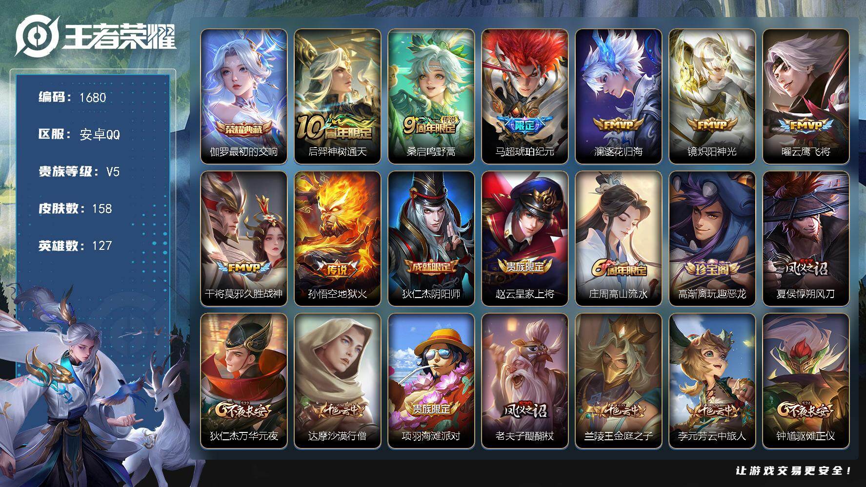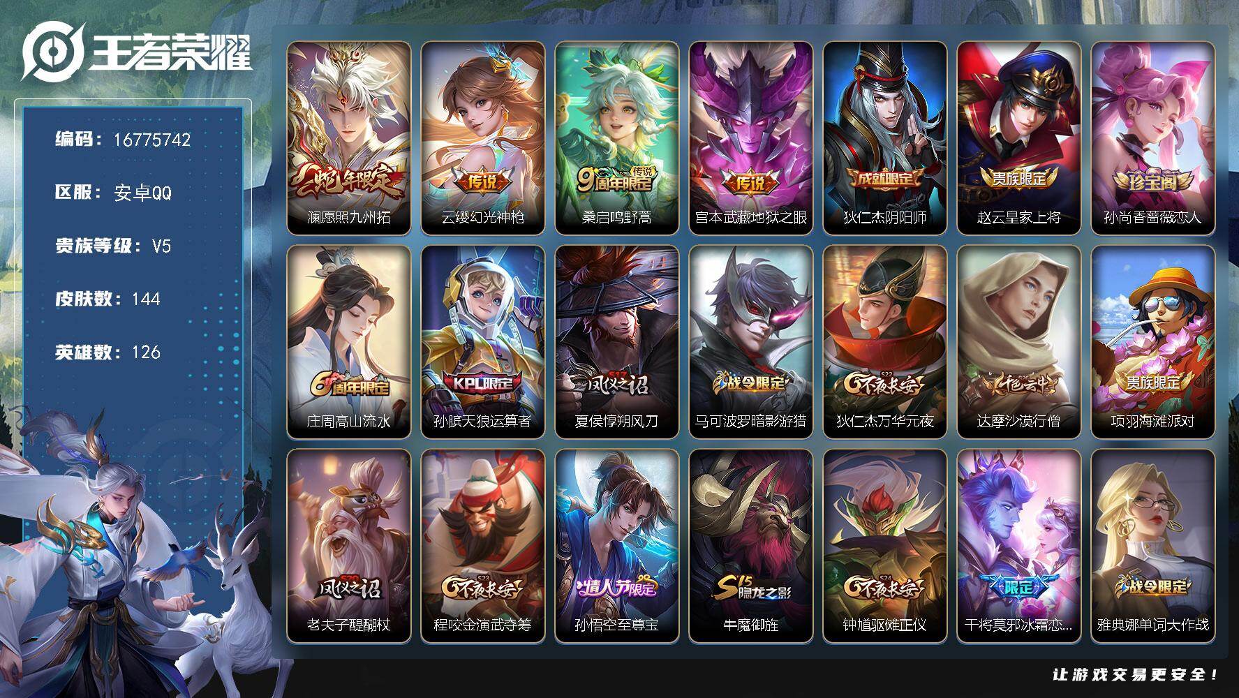 【16775742】安卓Q-V5-至尊星耀V段位-126英雄-144皮肤-4传