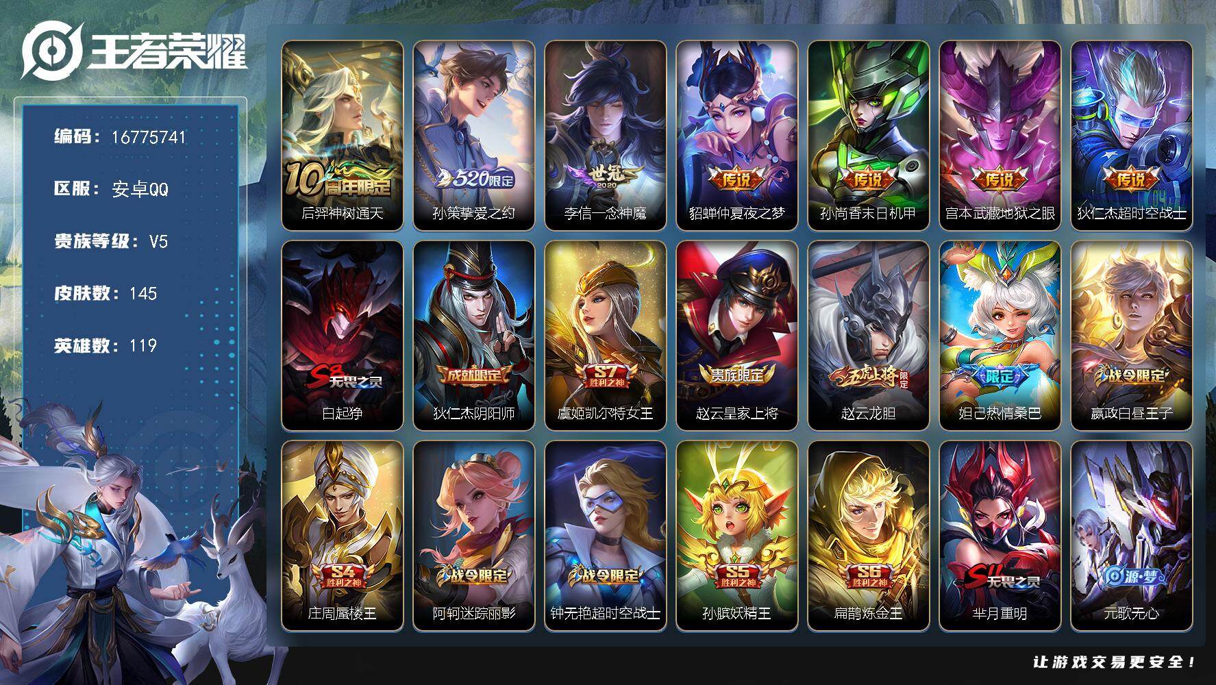 【16775741】安卓Q-V5-荣耀黄金II段位-119英雄-145皮肤-7