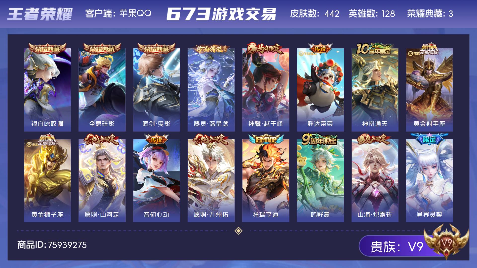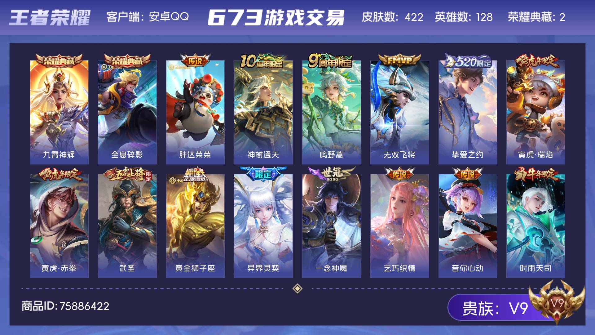 V10 皮肤478 英雄128 至尊星耀 荣耀典藏5 传说76 其他皮肤404