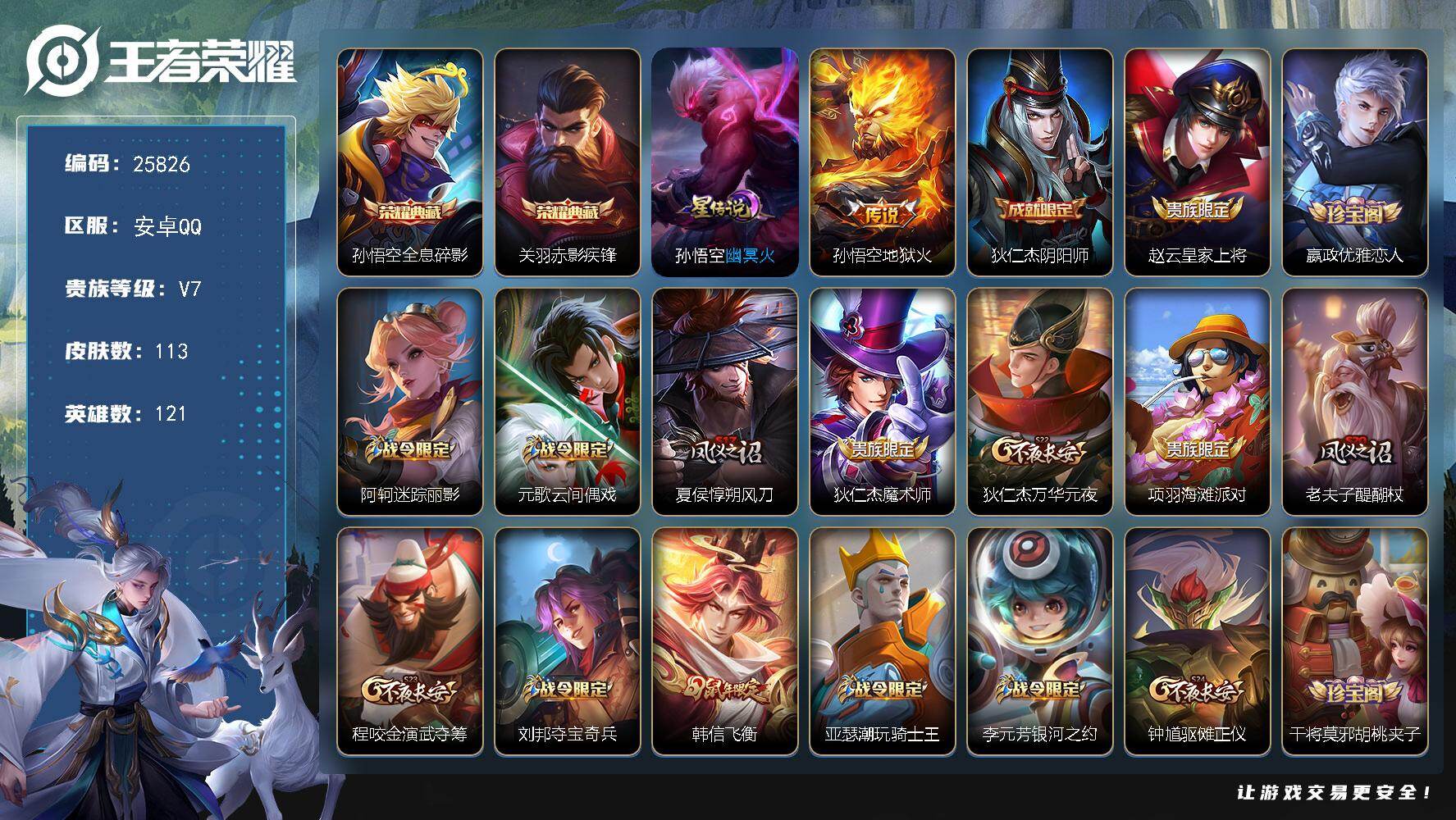 【16775752】安卓Q-V7-永恒钻石II段位-124英雄-93皮肤-1传