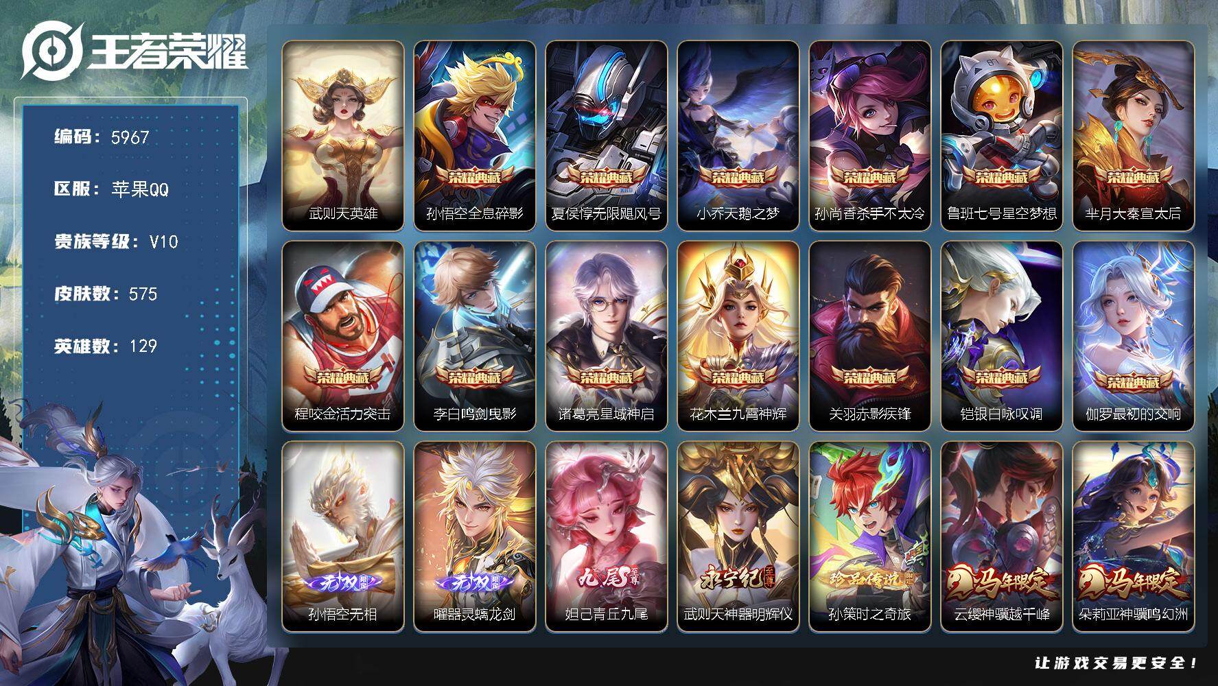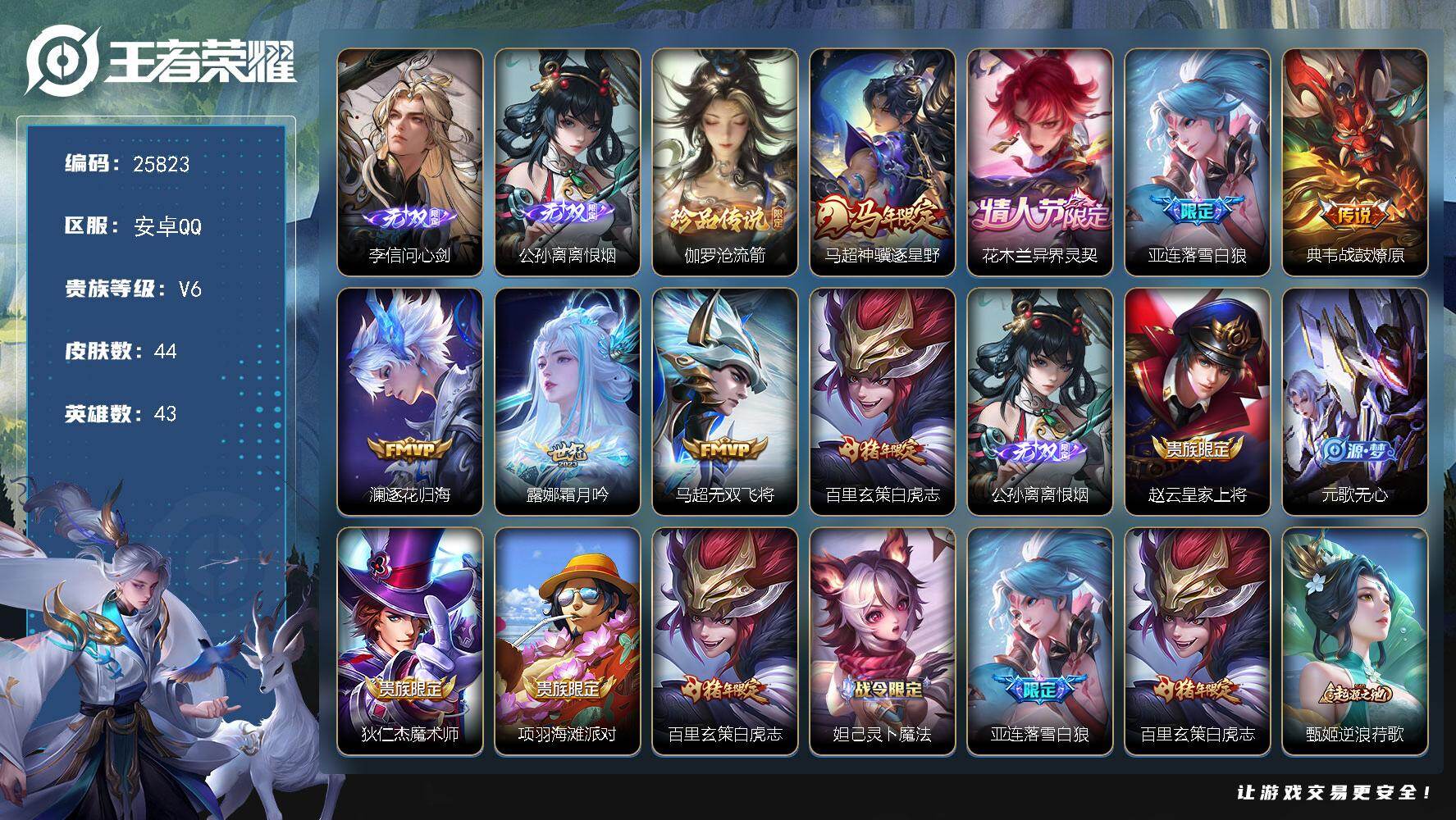 【16775750】安卓Q-V6-至尊星耀V段位-123英雄-130皮肤-2传
