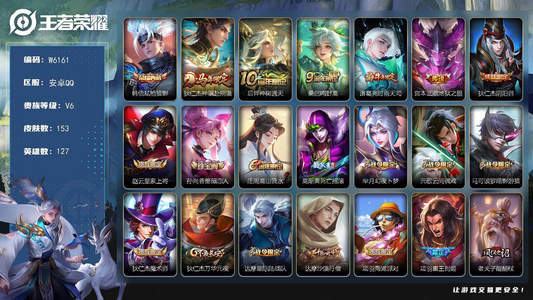 实名: 可修改 贵族等级: V7 英雄数: 127 皮肤数: 3
