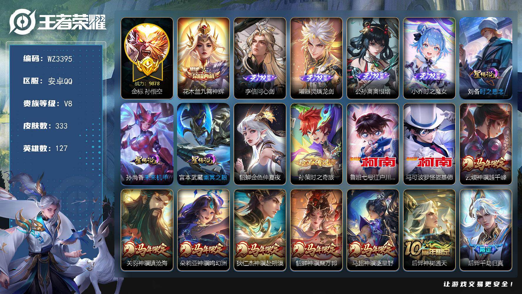【秒换绑】安卓Q-V8-【金标孙悟空】最强王者段位-127英雄-333皮肤-1