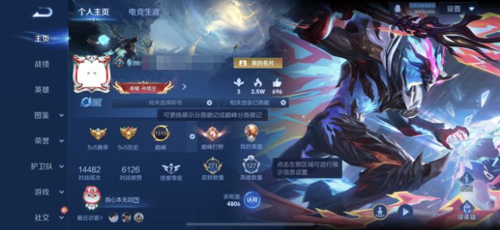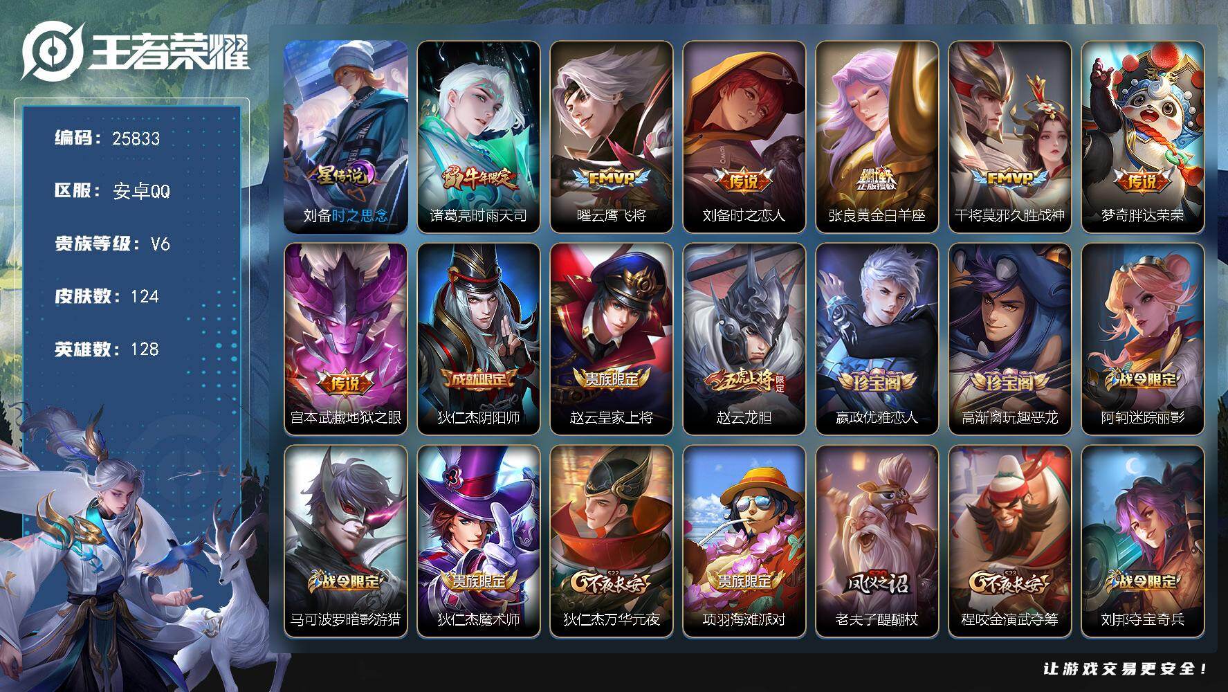 实名: 可修改 贵族等级: V7 英雄数: 124 皮肤数: 170 荣耀水晶