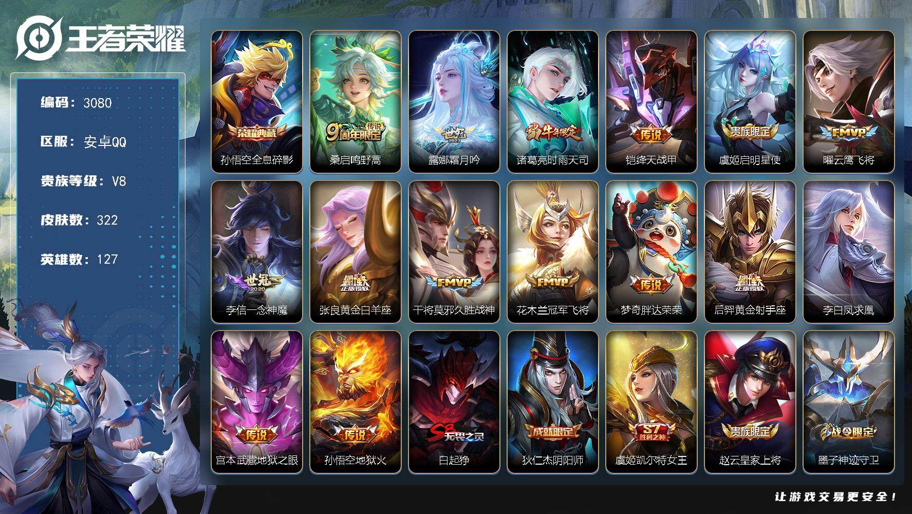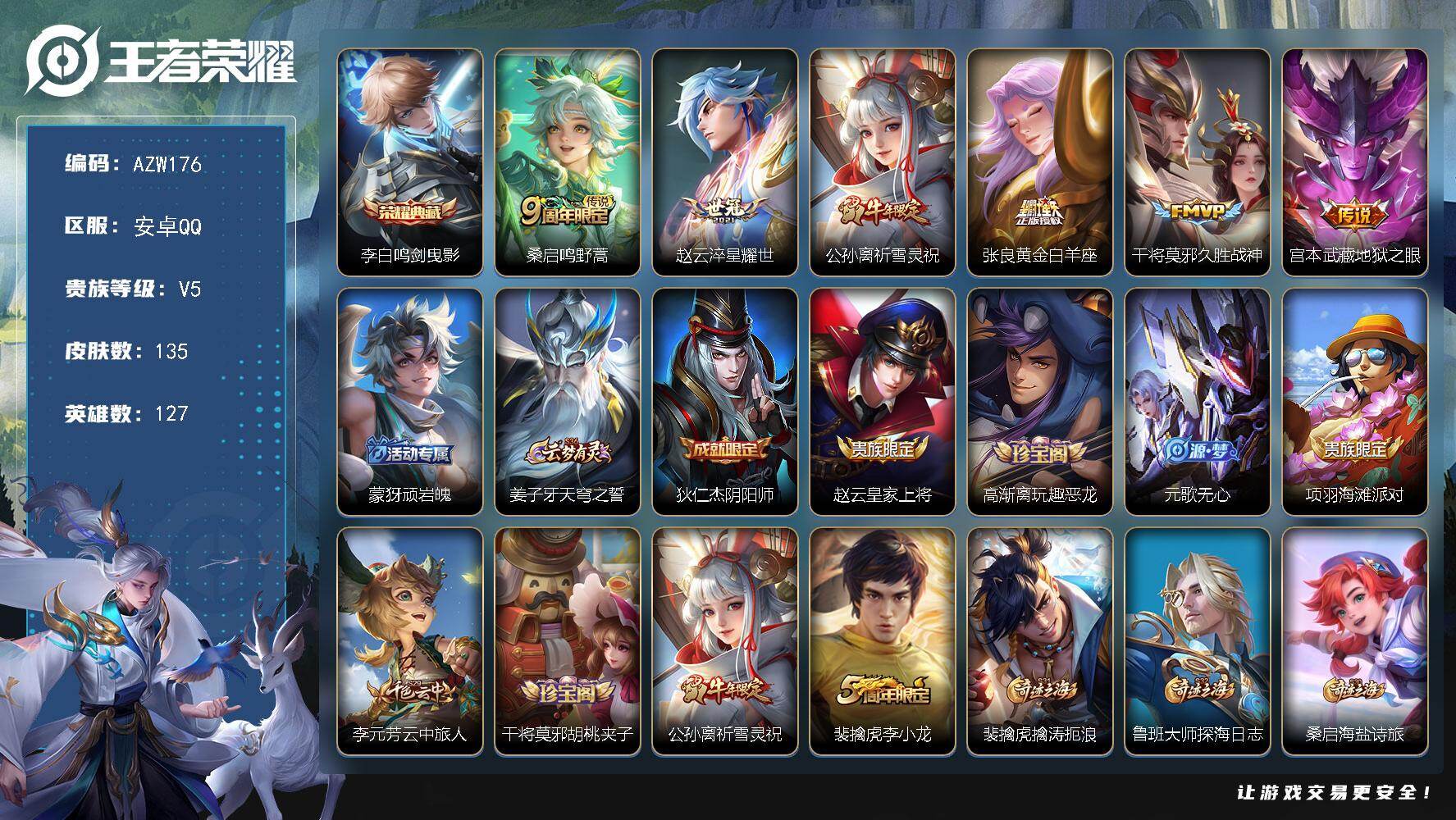 【AZW176】安卓Q-V5-最强王者段位-127英雄-135皮肤-1典藏皮肤