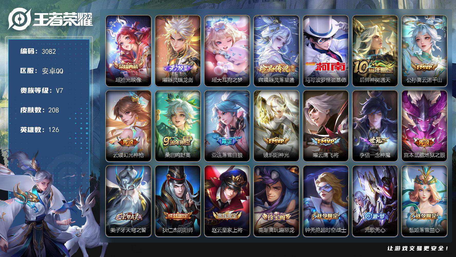 可二次【九霄神辉 231皮肤1水晶3传说可秒换绑】安卓QQ