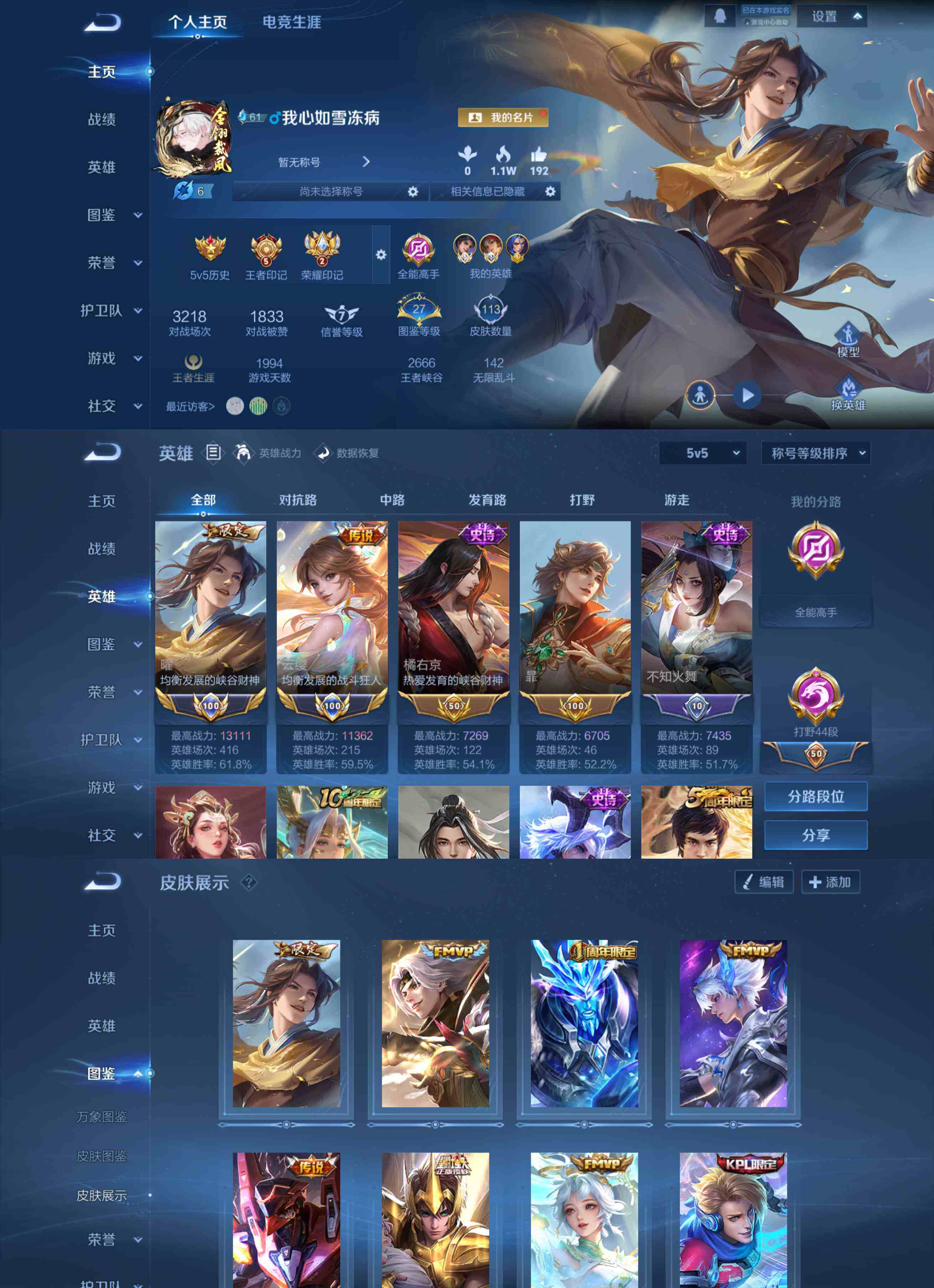 王者小号段位王者一个无双几个传说还附带几个按键皮肤
