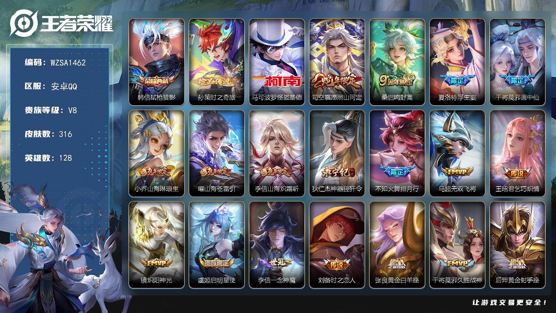 V8-最强王者段位-128英雄-316皮肤-1典藏皮肤-2珍品传说