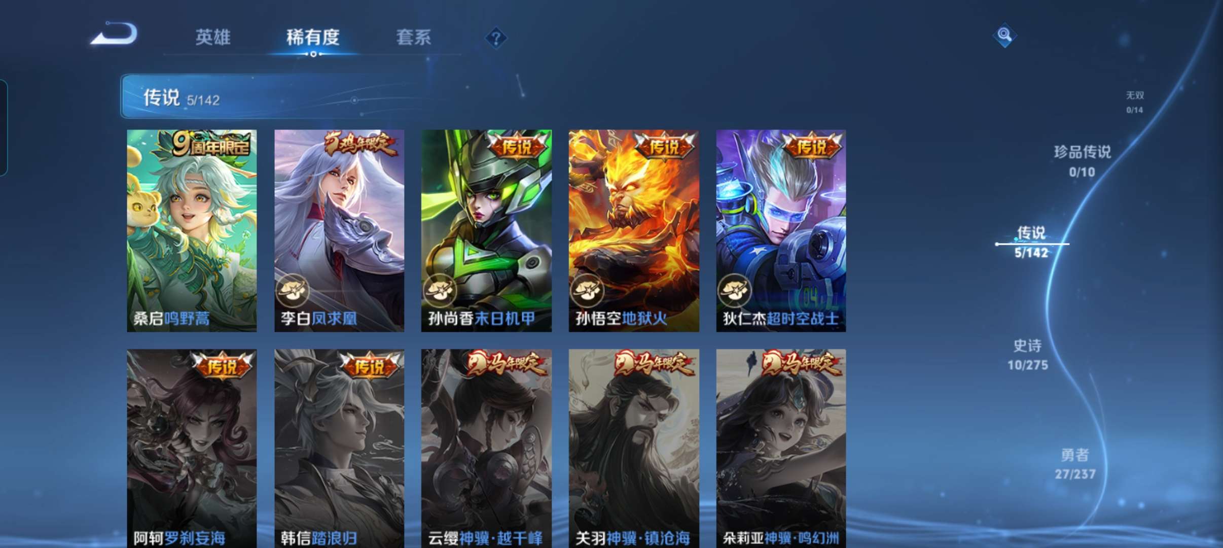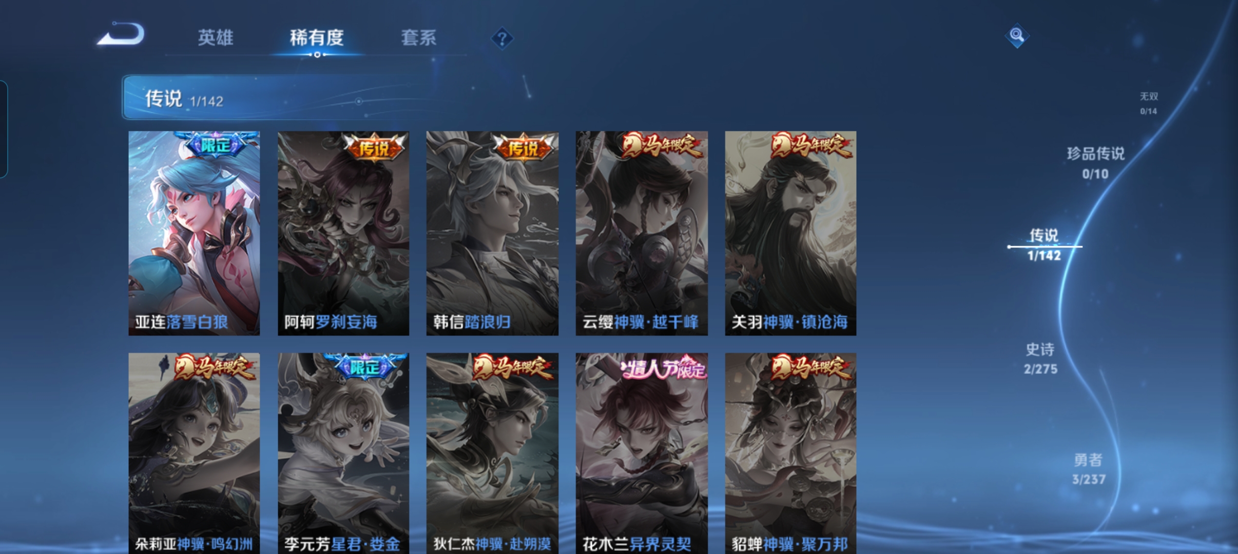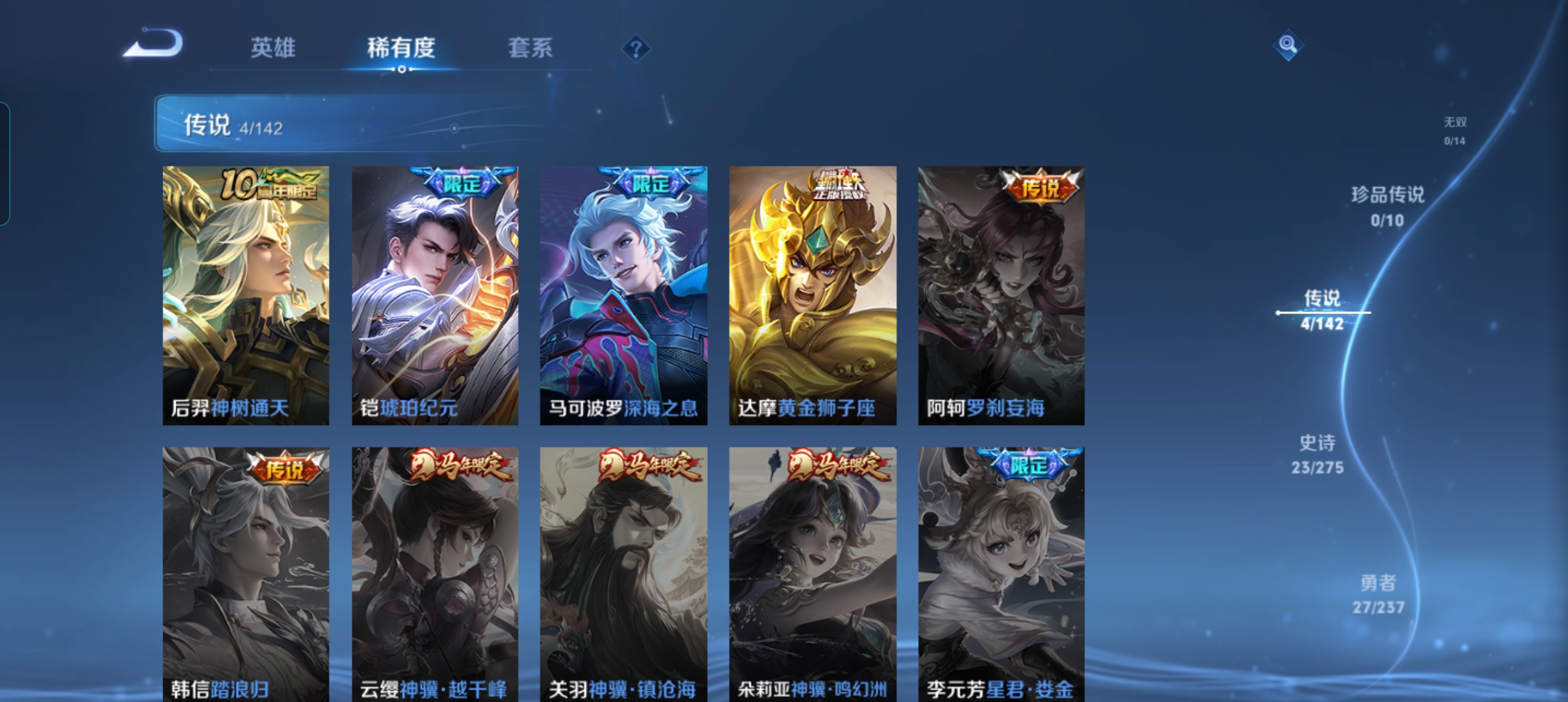 便宜极品v10号471皮5典藏1无双53传说和很多稀有限定2天幕3星传说很多星元