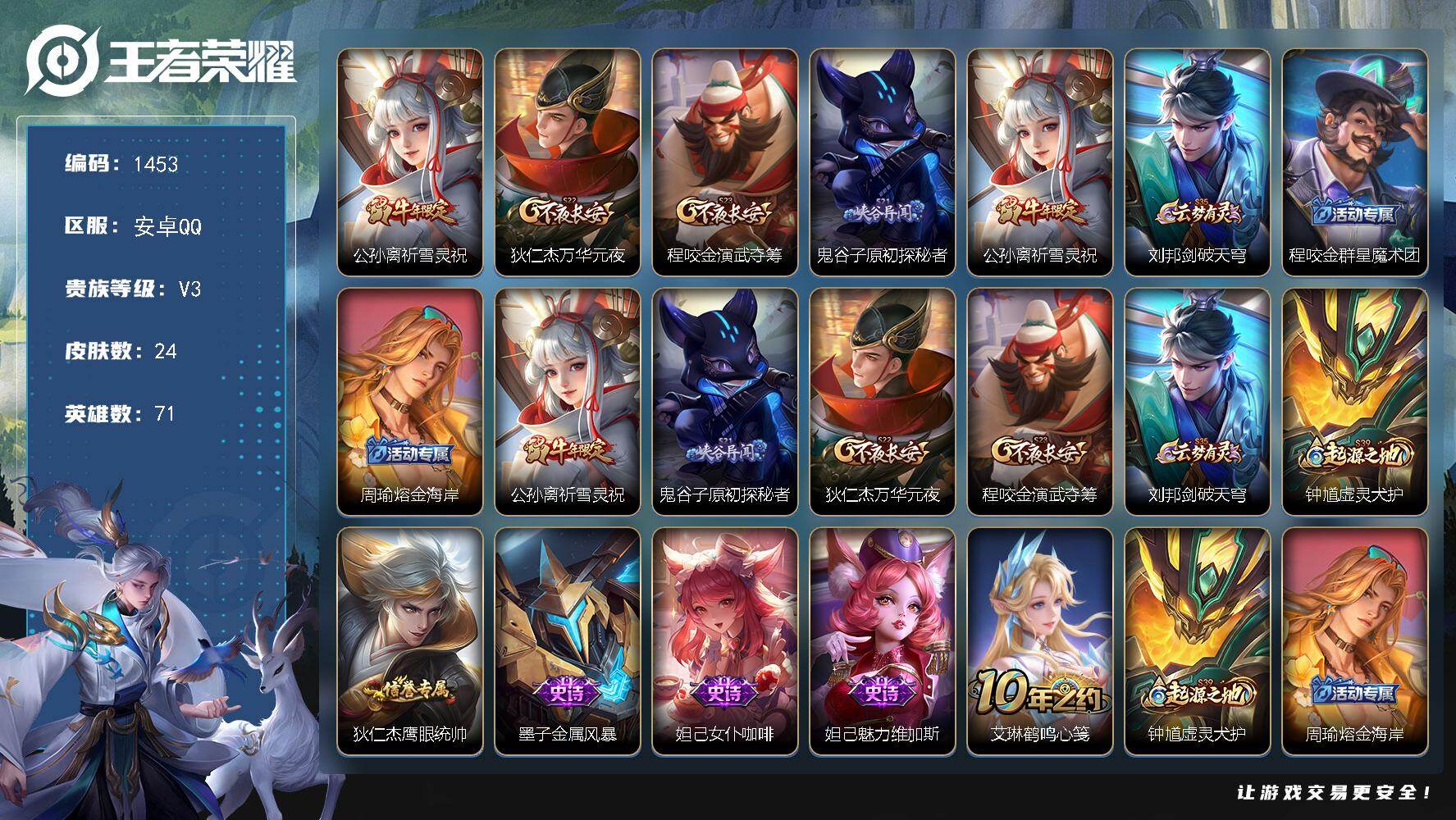 2474063 王者荣耀账号 安卓Q-V3-尊贵铂金IV段位-71英雄-2