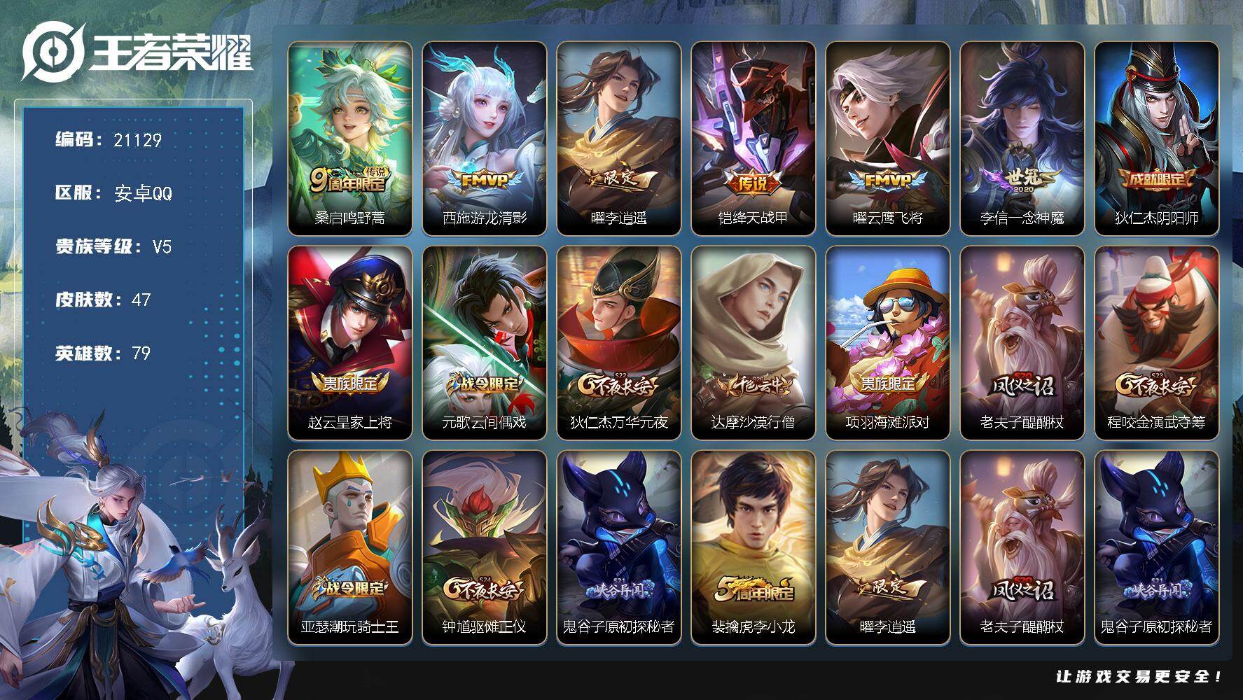 可换绑【打野李逍遥专属小号】五级铭文90 可二次KK8078 安卓Q-V5-4