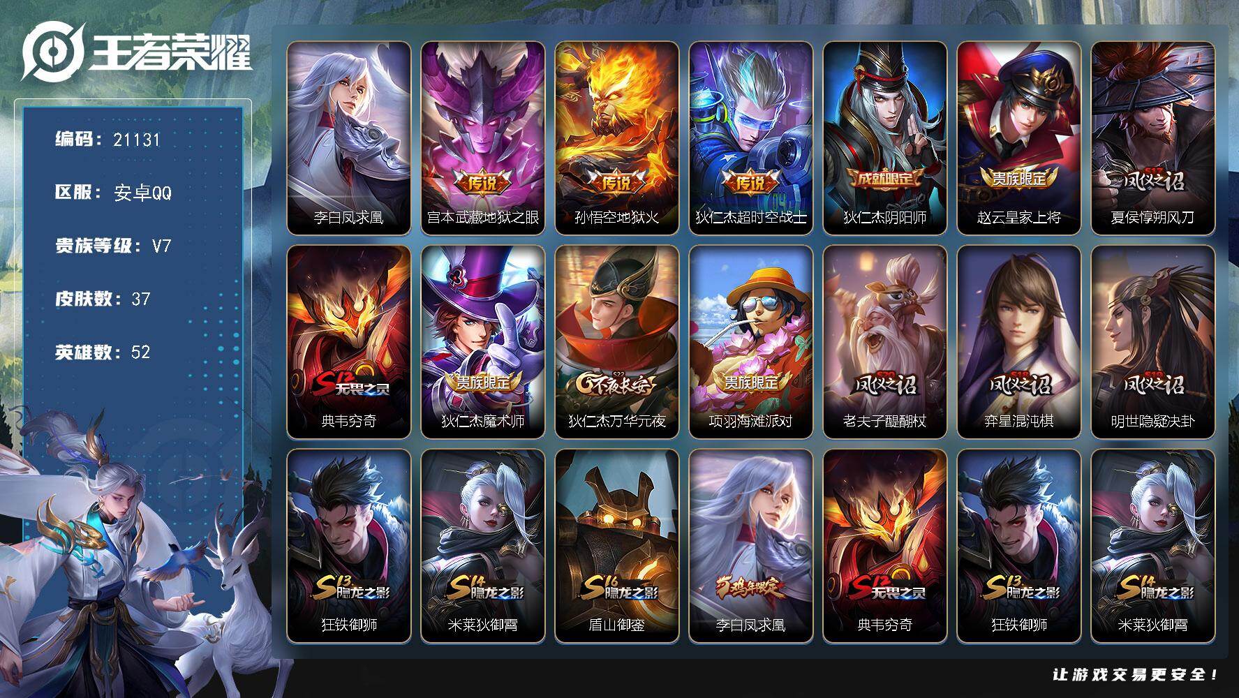 可换绑 五级铭文9 可二次KK8081 安卓Q-V7-37皮肤-4传说-9史诗