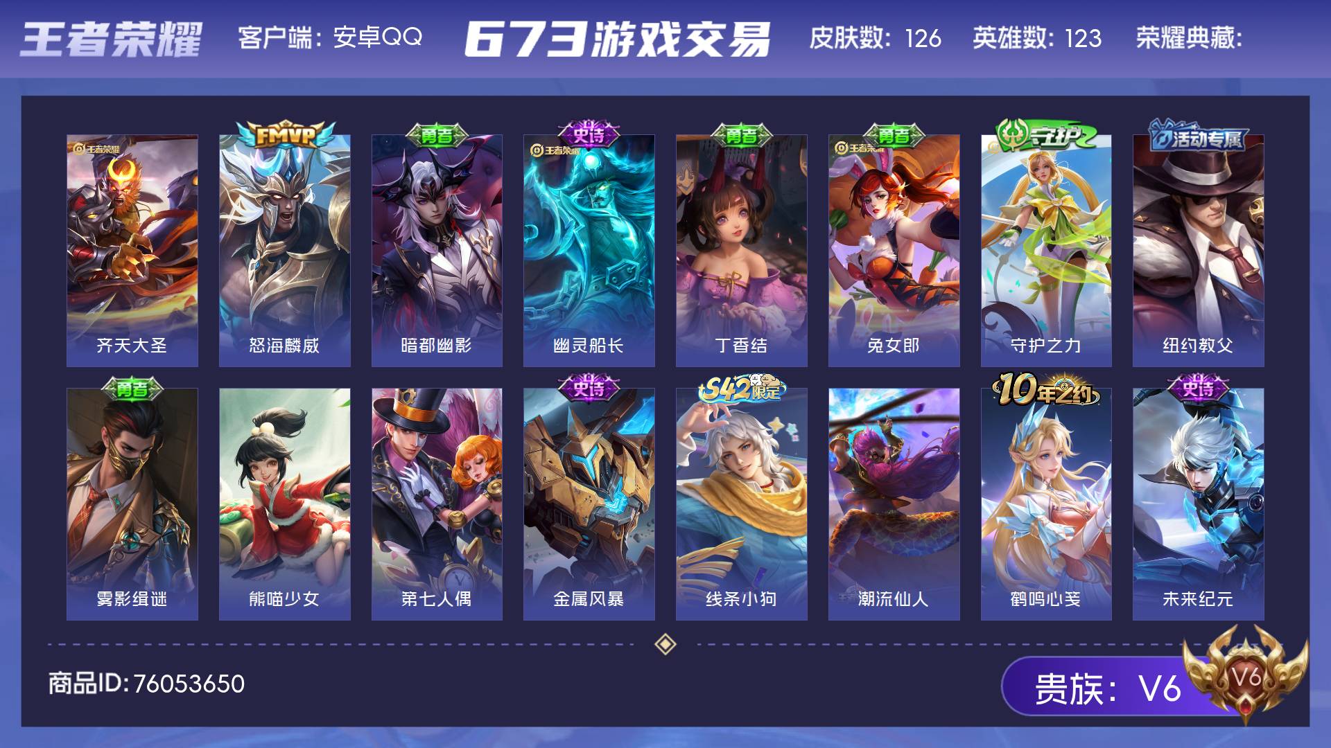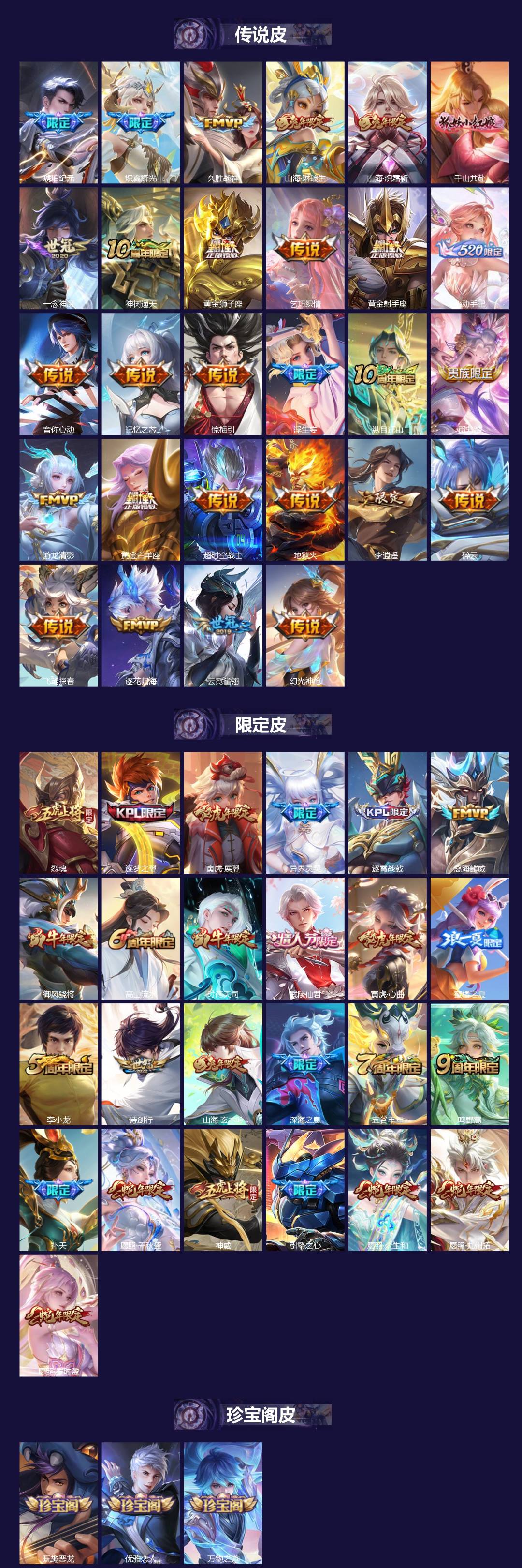 V6 皮肤126 英雄123 至尊星耀 传说2 其他皮肤131